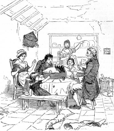 Toby shook his head, and devoured this second cake as quickly as he had the first, craning his neck, and uttering a funny little squeak as the last bit went down, just as a chicken does when he gets too large a mouthful of dough.