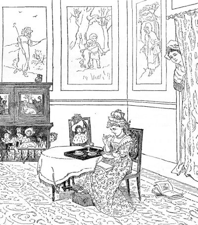This reception was given in a hall on Thirty-third Street, and consisted of a series of tableaux, in which all the characters were represented by the most lovely and exquisitely dressed French dolls. These tableaux were shown in dainty booths tastefully draped and decorated, so that the effect was extremely pretty, and the reception furnished a[Pg 133] novel and delightful entertainment to the children who attended it in throngs during the three days that it lasted.