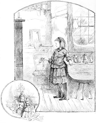 The little fur-clad figure knocking for admittance is that of New Year himself, Master Eighteen Eighty-One, laden with promises and good wishes that will, we hope, insure him a warm welcome from the sleepy watchers within the cozy room to which he seeks to enter. Even Miss Dolly, whom the children have left on the cricket in the corner to watch the old year out and the new one in, and who does not look at all sleepy, will welcome the little stranger in her own way, and he will quickly be made to feel at home.