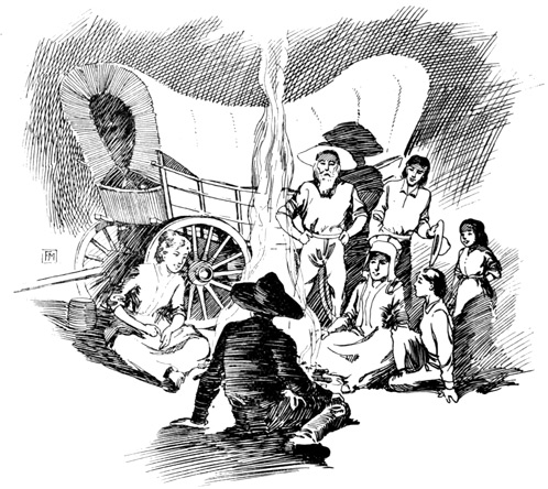 Having drunk our fill, Ellen and I went back to the wagon, where we ate heartily of corn bread, and then laid ourselves down to sleep, while the men and boys were bringing the teams into a circle to form a corral. [125]