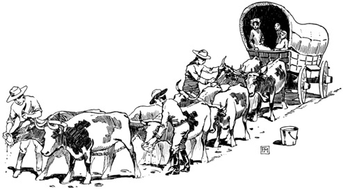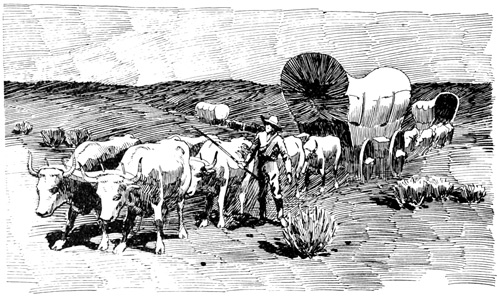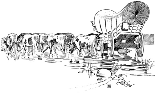 At the end of an hour, perhaps, we came upon what Ellen called another "soft spot," and for a distance of two or three miles the oxen strained and tugged at the yokes as they barely succeeded in drawing the wagons at a snail's pace.