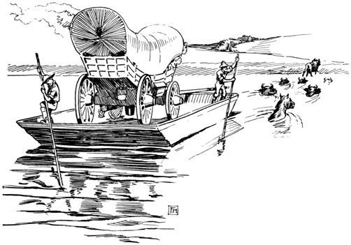When Ellen asked him how long a time the crossing would take, he said he hoped no more than twenty or twenty-four hours. He also told us it had been agreed [116] that if one of the wagons should break down, or any accident happen, the unfortunate ones were to be left behind, the remainder of the company continuing on without making any effort to aid them.