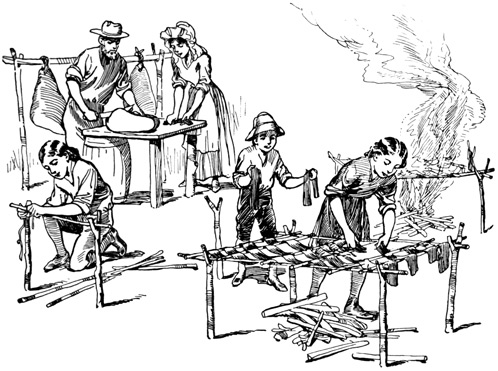 The visitors had with them a quantity of dried meat and roots which they wanted to trade with us for bread or for blankets; but our store of provisions was not so low that we would willingly eat what those creatures had prepared.