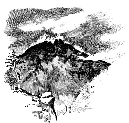 When the sun was no more than three hours from setting, I strained my eyes ahead, hoping to see the end of this horrible journey, although mother had told me there was no possibility of our coming to water until late in the night, and I saw the foremost of the wagons leaving the white plain, and passing over what promised to be a good road, toward a rocky range.