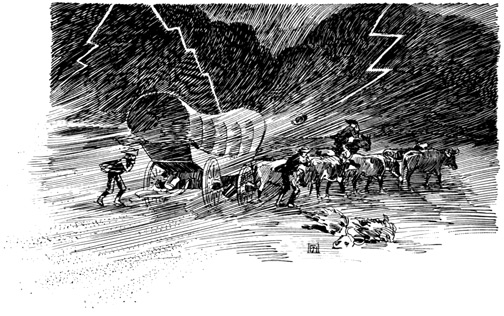 Father urged mother and us girls to eat and drink heartily while we might. When I asked him why we were to set off at such an unusual hour, he replied in a serious manner that from the moment we started until the desert had been crossed, there would be no halt made unless some of the oxen fell by the wayside and we were forced to delay in order to unyoke them.