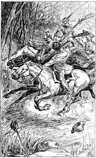 Seizing the chair upon which he sat he [8] rushed upon the insolent Britisher, striking him senseless with a single blow, and then making his escape at once, for the king's soldiers were there in force, he mounted his horse and fled from the town.