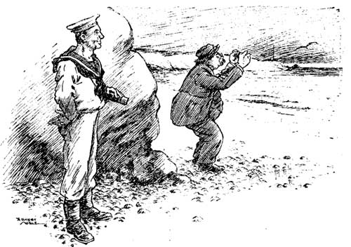 German Spy (who has been signalling and suddenly notices that he is being watched). "Nein! Nein! Never shall you land on my beloved Shcotchland!"