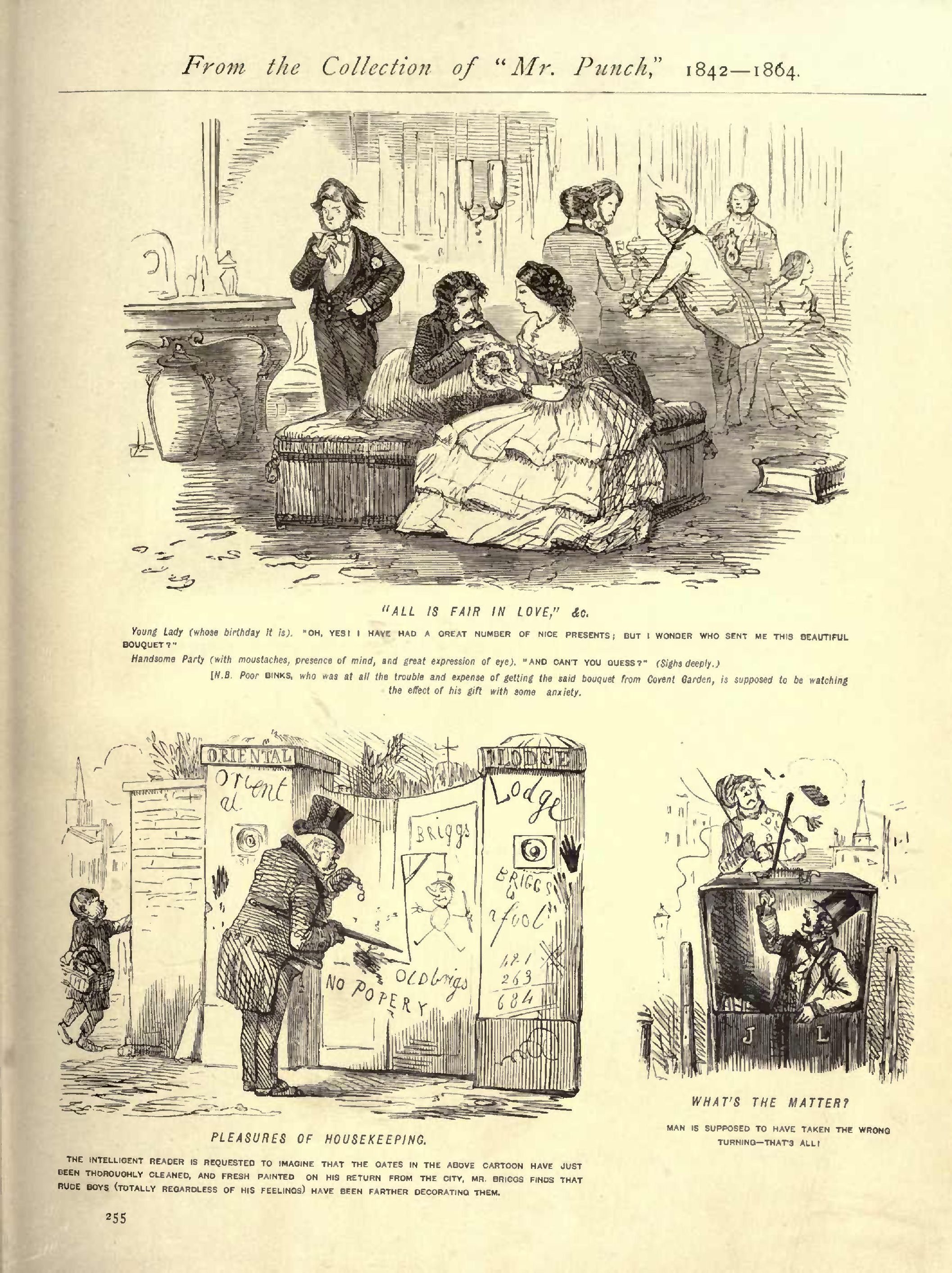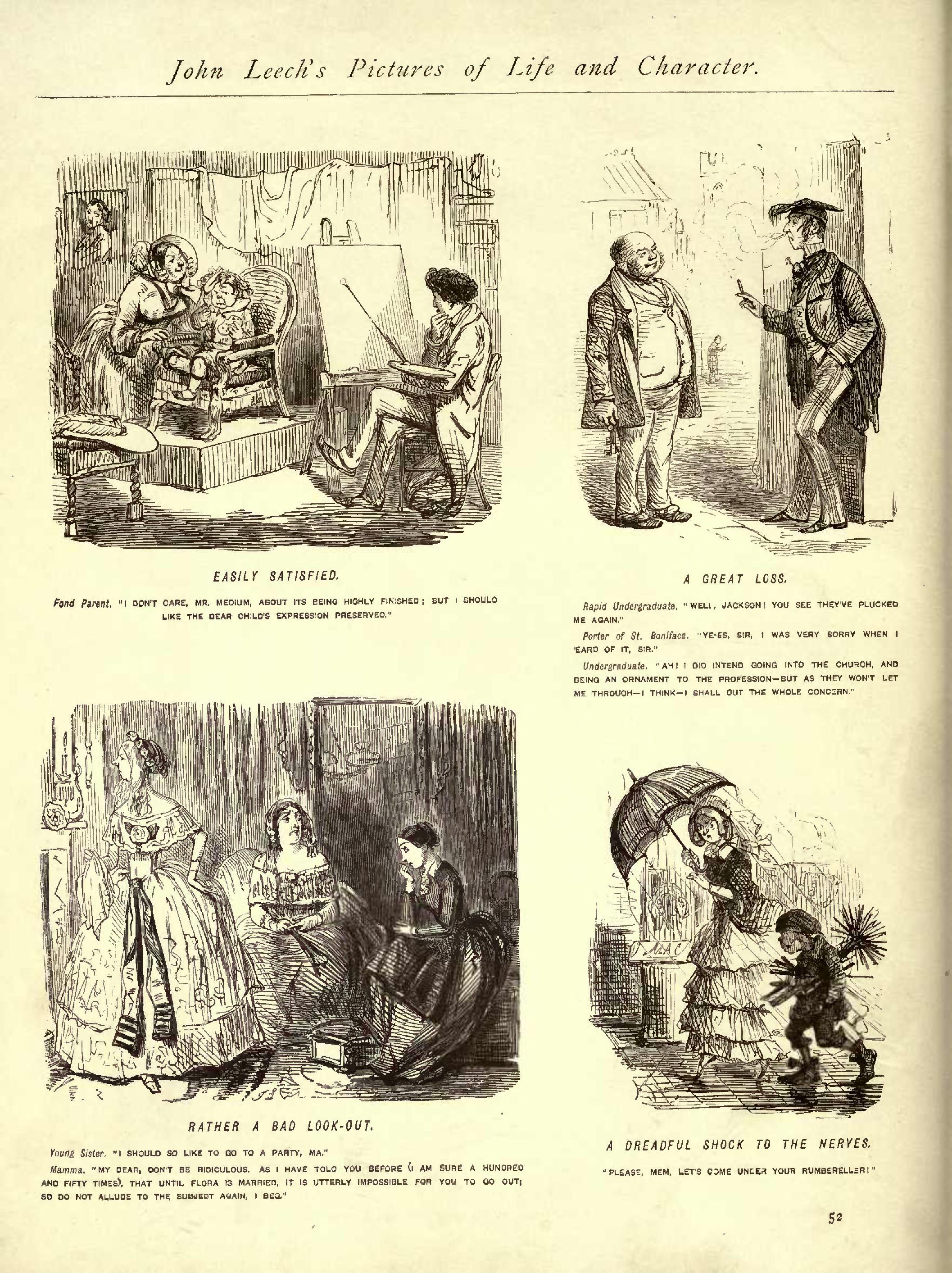 Bachelor Housekeeping .................................1852...263 Back View, A ..........................................1854...211 Ballooning ............................................1850...266 Bands of Hope, The.....................................1852...056 Barrack Life ..........................................1851...058 Bath at Boulogne, A....................................1853...165 Battle of the Pianos, The..............................1855...250 Battledore and Shuttlecock.............................1854...220 Beard and Moustache Movement, The......................1853...140 Beard Movement, The....................................1854...049 Something wrong with the Chimney ......................1846...279 Best of Both Worlds....................................1848...084 Best Preventive against Sea-sickness: I., II., III.....1855...163 Betting Fever, The ....................................1852...265 Birthday, The.,........................................1853...088 Bit from the Mining Districts .........................1854...121 Bit of his Mind, A.....................................1853...222 Bit of Serious Pantomime, A ...........................1855...168 Bitter Sarcasm ........................................1850...027 Bles the Boy 1 .......................................1850...015 Boat for an Hour, A ...................................1846...151 "Bolted 1".............................................1852...265 Bon-bon from a Juvenile Party, A.......................1851...017 ...090 Bottom-Fishing.........................................1855...118 Bribery is detestable, but Politeness costs Nothing....1847...183 Brilliant Idea. A......................................1854...259 British Ruffian, A.....................................1852...132 Briton Abroad, The.....................................1853...124 Brook Green Volunteer, The.............................1846...155 ...157 ...159 ...173 ...174 ...175 ...177 Brutal Fellow, A ......................................1853...046 By the "Sad Sea Waves "................................1854...268