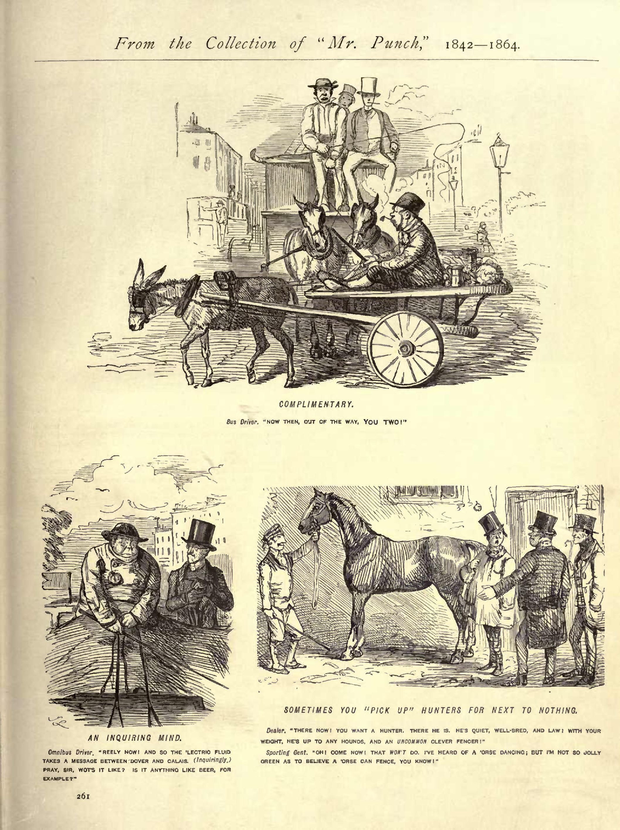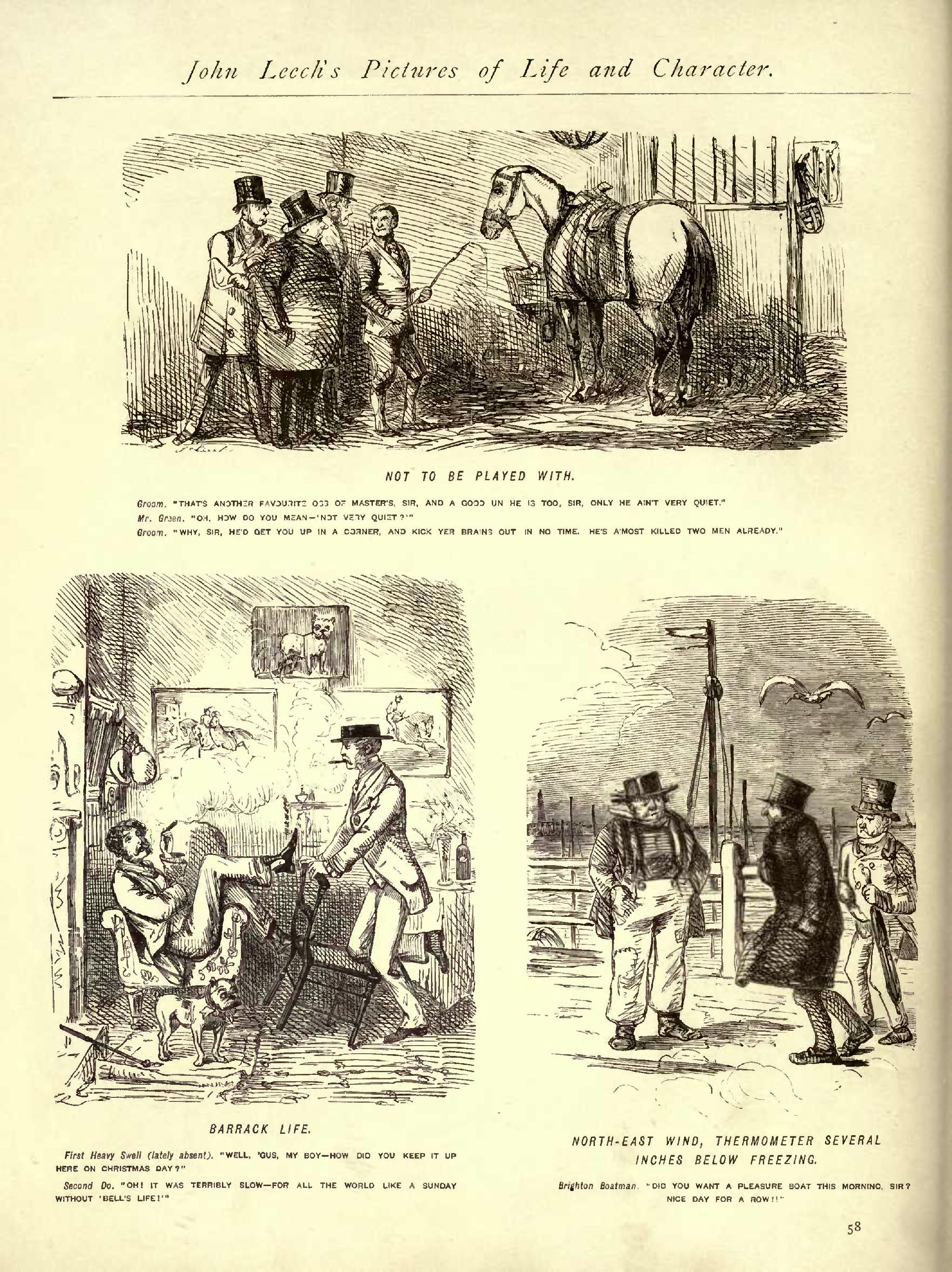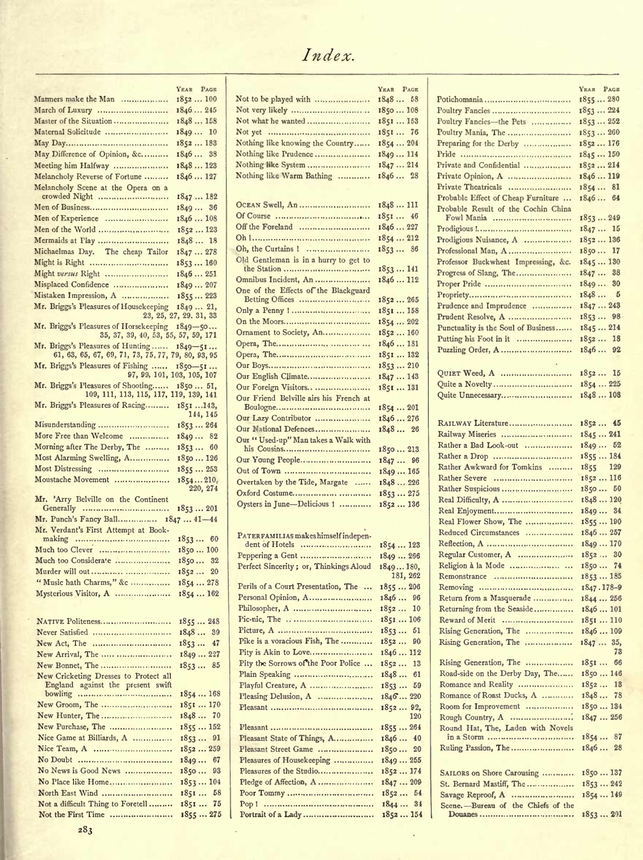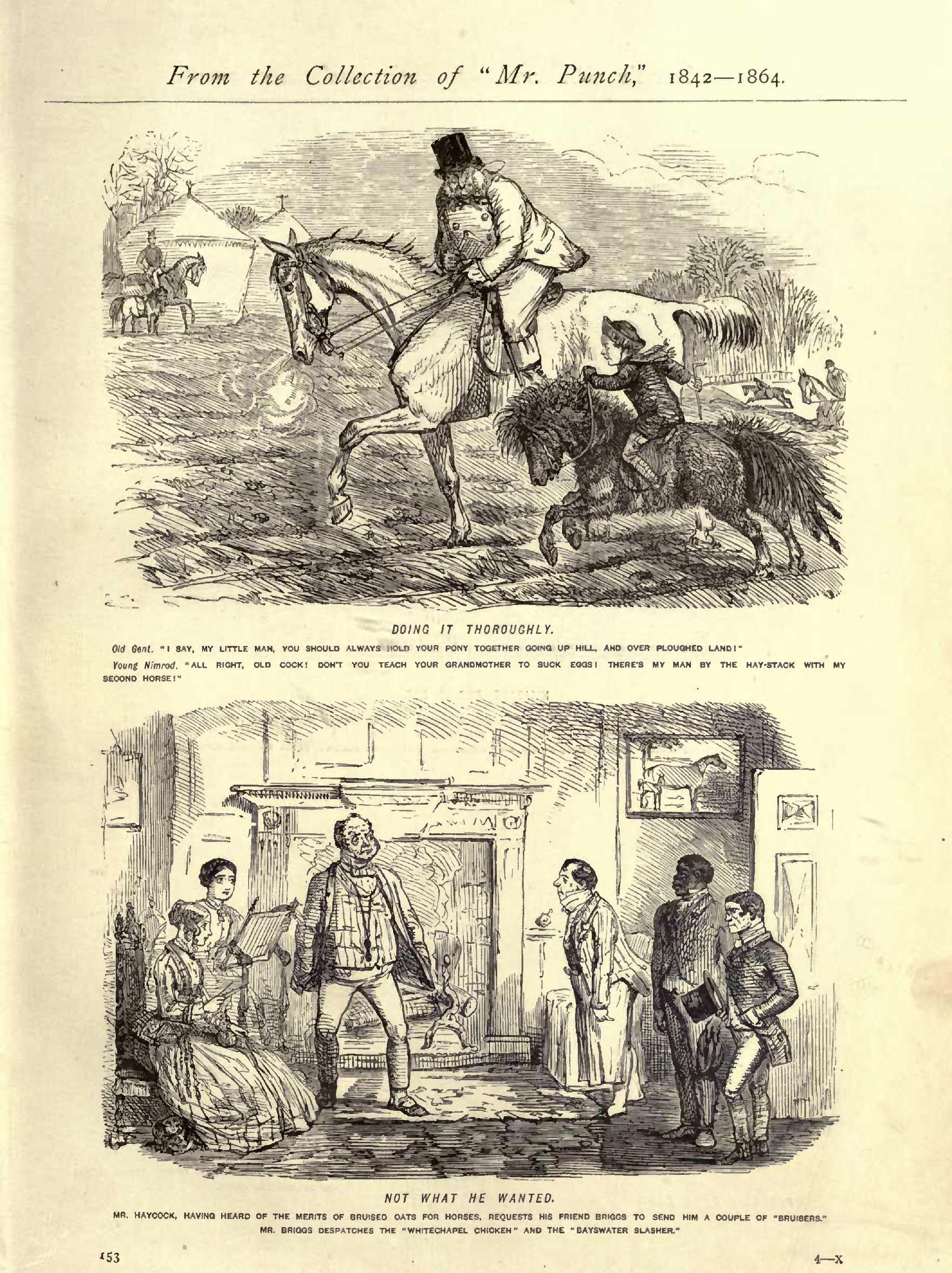 Native Politeness......................................1855...248 Never Satisfied .......................................1848...039 New Act, The ..........................................1853...047 New Arrival, The.......................................1849...227 New Bonnet, The........................................1853...085 New Cricketing Dresses to Protect from swift bowling...1854...168 New Groom, The ........................................1851...170 New Hunter, The........................................1848...070 New Purchase, The .....................................1855...152 Nice Game at Billiards, A .............................1853...091 Nice Team, A ..........................................1852...259 No Doubt ..............................................1849...067 No News is Good News ..................................1850...093 No Place like Home.....................................1853...104 North East Wind .......................................1851...058 Not a difficult Thing to Foretell......................1831...075 Not the First Time ....................................1855...275 Not to be played with .................................1848...058 Not very likely .......................................1850...108 Not what he wanted.....................................1851...153 Not yet ...............................................1851...076 Nothing like knowing the Country ......................1854...201 Nothing like Prudence..................................1849...114 Nothing like System....................................1847...214 Nothing like Warm Bathing .............................1846...028