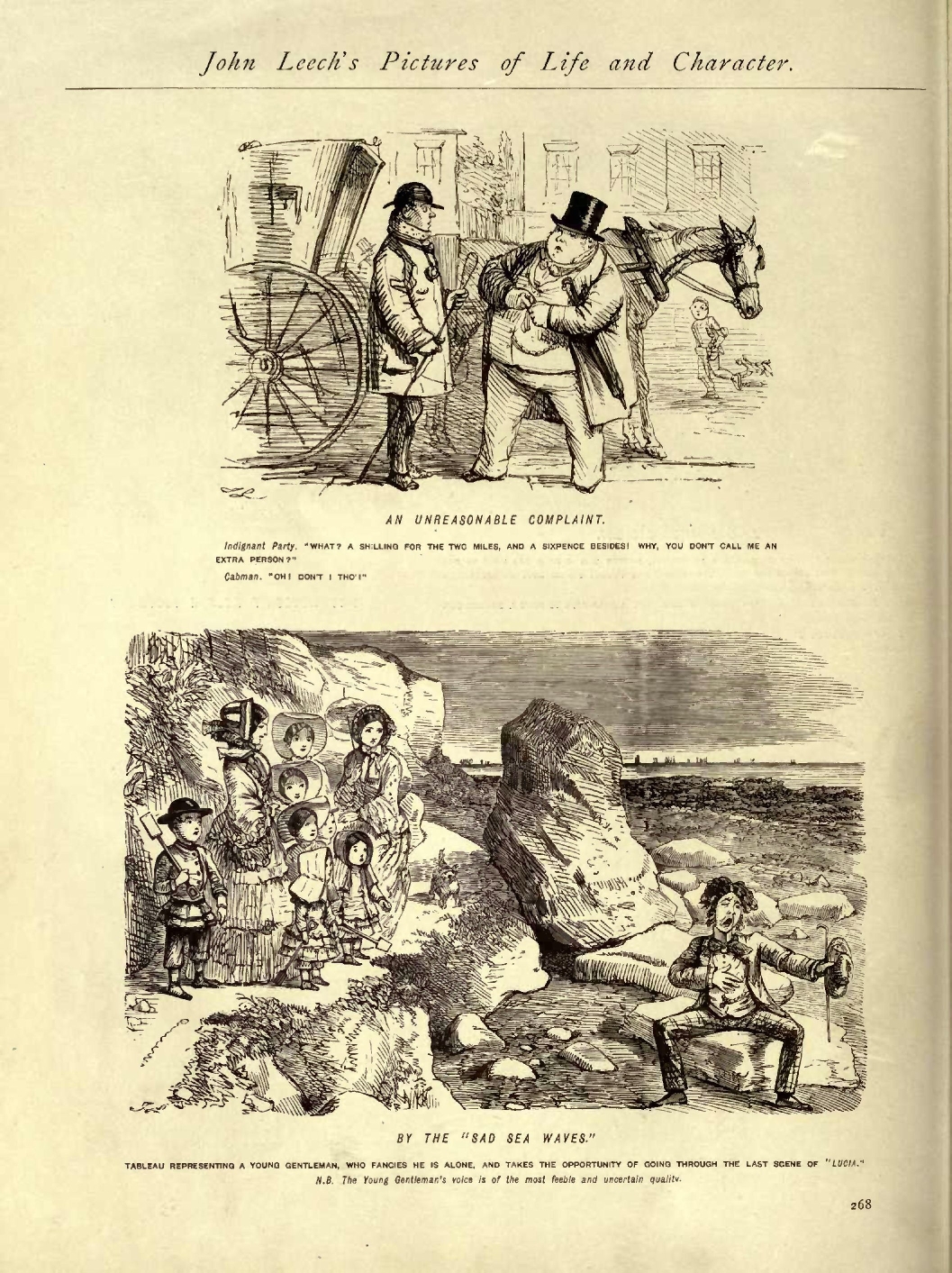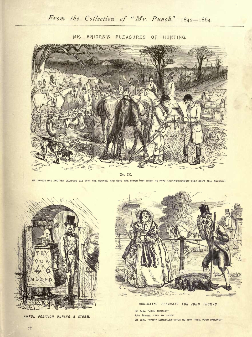 Sailors on Shore Carousing ............................1850...137 St Bernard Mastiff, The................................1853...242 Savage Reproof, A .....................................1854...149 Sccne.--Bureau of the Chiefs of the Douanes............1853...211 Scene on the English Coast.............................1855...208 Scene--Westminster Bridge .............................1853...069 Sea-side Hat, The .....................................1854...221 ...247 Sea-side Literature for Young Ladies...................1849...147 Sea-side. Saturday Evening ............................1848...216 Sea-side. The Bathing Hour.............................1855...152 Seasonable Question....................................1850...132 Self-Esteem............................................1848...126 Sell, A................................................1851...150 Servantgalism..........................................1853...212 ...217...218...221...222...242 Shakespeare a little altered...........................1845...172 Silver Age, The........................................1853...162 Sketch at Ramsgate, A..................................1852...051 Sketch from Nature, A..................................1845...066 Sketch near Burton Crescent ...........................1847...038 Sketch of Character by, &c.............................1850...095 Small by Degrees and beautifully Less..................1855...219 Smart Youth, A.........................................1847...267 Snow-Flakes ...........................................1853...088 Snuffed out............................................1851...003 Social Struggles.......................................1852...212 So fond of it .........................................1851...175 Solicitude ............................................1849...048 Something like a Brother...............................1852...033 Something like a Holiday...............................1845...022 Sometimes you "pick up" Hunters for next to nothing ...1847...261 Son and Heir...........................................1853...072 Sound Advice...........................................1852...076 Speak as you Think ....................................1849...142 Speculators............................................1846...017 Spelling a Newspaper ..................................1842...180 Splendid Day with the "Queen's"........................1848...105 Sporting Character, A..................................1847...131 Sporting Extraordinary.................................1852...008 Sporting Gent practising for the Season ...............1847...278 Sporting Intelligence..................................1852...102 Stag at Bay, The ......................................1845...278 Startling Effect of the "Gold Diggings"................1852...134 Startling Request, A...................................1846...053 Steeple-Chase, The ....................................1853...200 Strange, but True......................................1850...074 Street Dialogue........................................1843...098 Strong Assertion ......................................1853...006 Study of an Elderly Female, &c.........................1853...180 Stunning Politeness ...................................1856...273 Subject for a Picture..................................1851...015 Suburban Felicity, Domestic (Poultry) Incident.........1854...138 Suggestion, A..........................................1848...093 Suggestive of a Picturesque Figure.....................1849...256 Summer in Elysium .....................................1852...148 Symptoms of Wet Weather................................1846...013