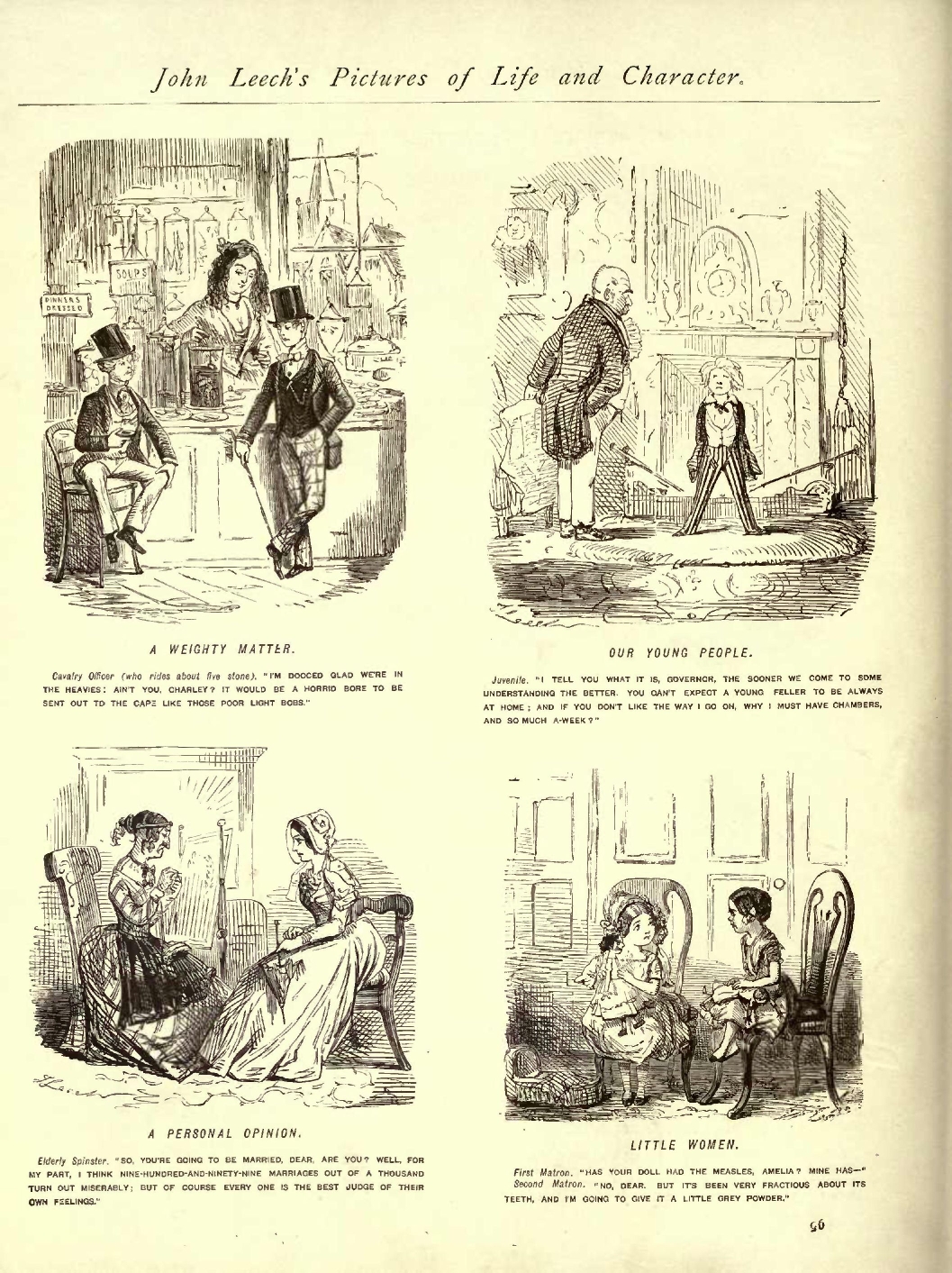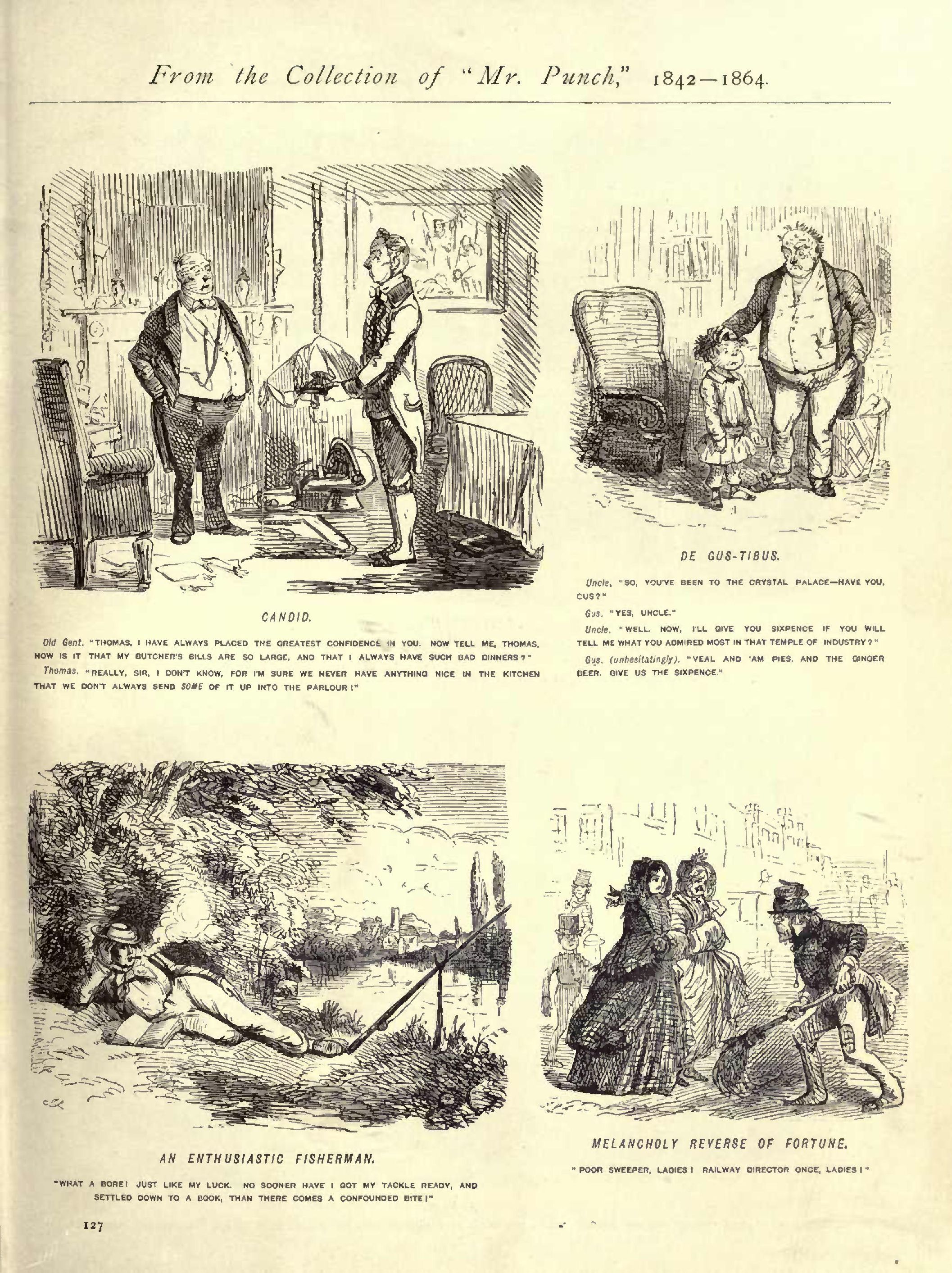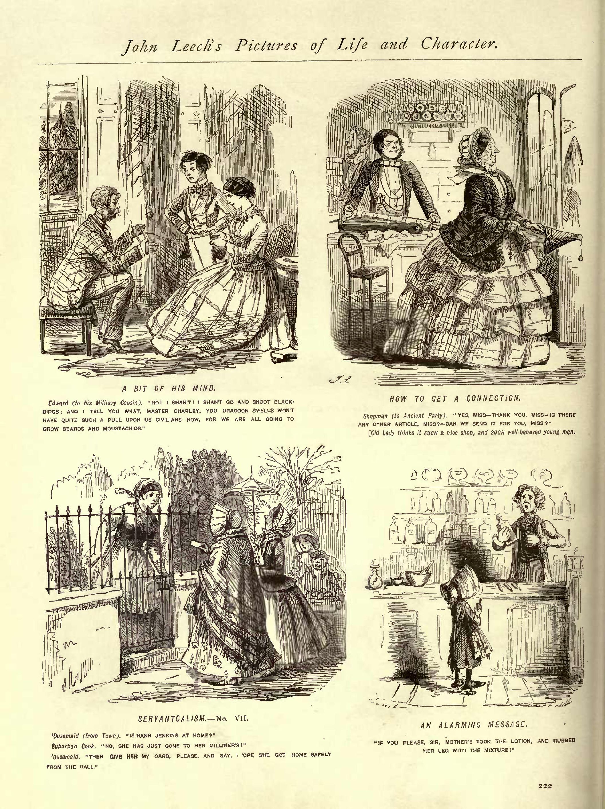 Candid.................................................1848...127 Capital Offer, A.......................................1854...208 Caught.................................................1847...098 Cause for Reproof, A ..................................1847...257 Caution to a Little Boy at a Festive Season, A ........1853...119 Changing the Subject ..................................1848...122 Chatelaine, The........................................1849...064 Cheap Day's Hunting, A.................................1849...184 ...185 Church and State ......................................1851...057 Close of the Season—The London Footman exhausted .....1846...279 Cold Comfort...........................................1849...139 Coming to the Point....................................1848...019 Coming Home ...........................................1853...086 Comparative Love.......................................1851...174 Complimentary .........................................1850...065 Complimentary .........................................1855...261 Compliments ...........................................1854...246 Confound the Shops.....................................1852...054 Conscientious Stable Keeper, The.......................1853...068 Consols at 90, Consols at 80 ..........................1848...167 Consolation............................................1845...118 Constitutional Walk, The...............................1853...258 Cool Assurance.........................................1854...205 Correct Mode of Riding in Rotten Row...................1851...007 Country Ball, A........................................1851...128 Country Races .........................................1854...243 Court Dress, A ........................................1848...005 Cruel .................................................1851...006 Cruel .................................................1853...110 Curious Mode of Conducting a Retail Establishment......1855...225 Curious Person, A......................................1852...278 Cut Him down Behind....................................1852...063