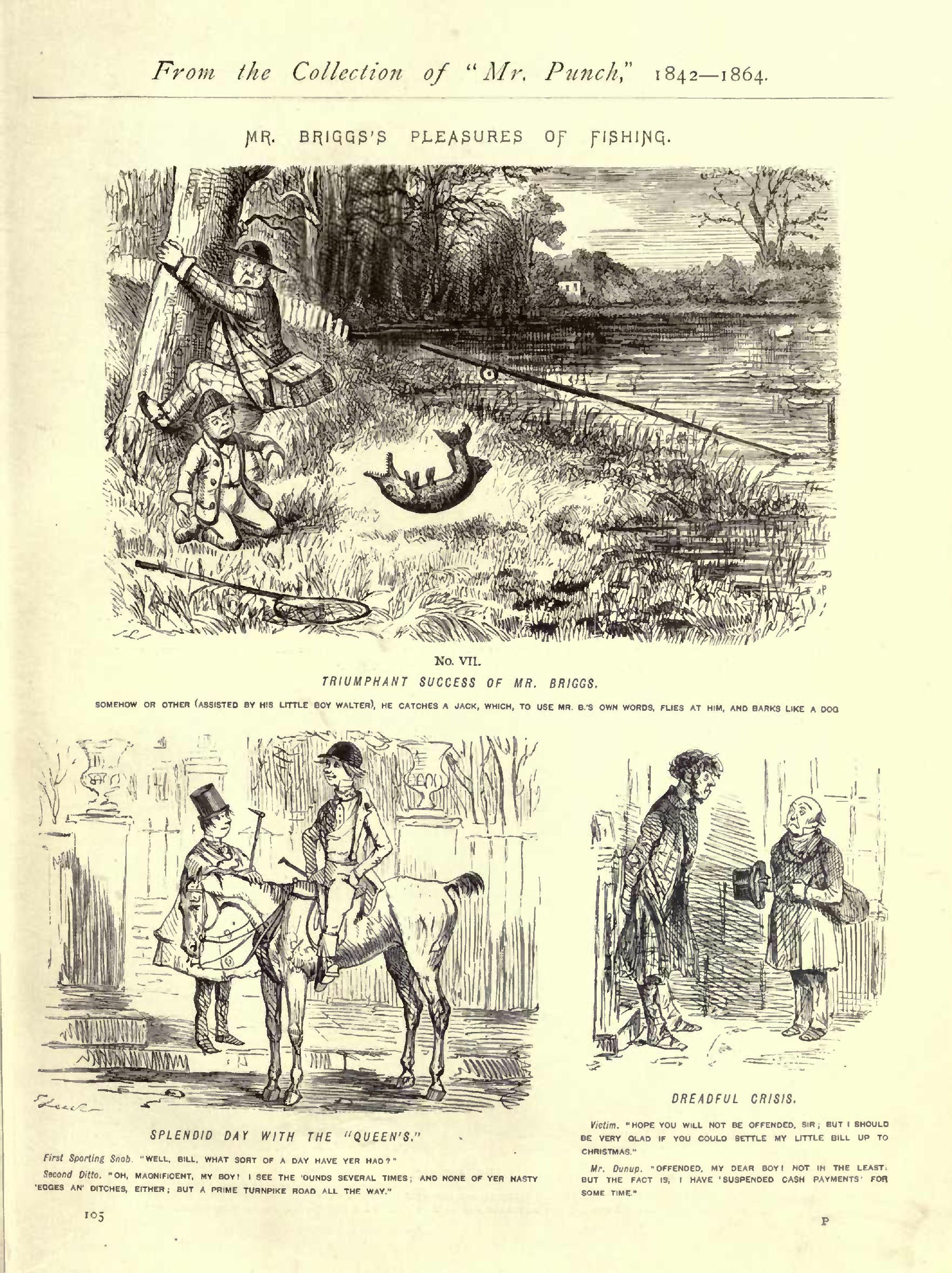 Manners make the Man ..................................1852...100 March of Luxury .......................................1846...245 Master of the Situation................................1848...188 Maternal Solicitude ...................................1849...010 May Day................................................1852...183 May Difference of Opinion, &c..........................1846...038 Meeting him Halfway ...................................1848...123 Melancholy Reverse of Fortune..........................1846...127 Melancholy Scene at the Opera on a crowded Night ......1847...182 Men of Business........................................1849...030 Men of Experience .....................................1846...105 Men of the World.......................................1852...123 Mermaids at I'lay............................. ........1848...018 Michaelmas Day. The cheap Tailor.......................1847...278 Might is Right ........................................1853...160 Might versus Right ....................................1846...251 Misplaced Confidence ..................................1849...207 Mistaken Impression, A ................................1855...223 Mr. Briggs's Pleasures of Housekeeping.................1849...021 ...023 ...025 ...027 ...029 ...031 ...033 Mr. Briggs's Pleasures of Horsekeeping ................1849...050 ...035 ...037 ...039 ...040 ...053 ...055 ...057 ...059 ...171 Mr. Briggs's Pleasures of Hunting......................1849...051 ...061...063...065...067...069...071...073...075 ...077...079...080...093...095 Mr. Briggs's Pleasures of Fishing .....................1850...051 ...097...099...101...103...105...107 Mr. Briggs's Pleasures of Shooting.....................1850...051 ...109...111...113...115...117...119...139...141 Mr. Briggs's Pleasures of Racing.......................1851...143 ...144...145 Misunderstanding.......................................1853...264 More Free than Welcome ............................... 1849...082 Morning after The Derby, The ..........................1853...060 Most Alarming Swelling, A..............................1850...126 Most Distressing ......................................1855...253 Moustache Movement ....................................1854...210 ...220...274 Mr. 'Arry Belville on the Continent Generally .........1853...201 Mr. Punch's Fancy Ball.................................1847...041 ...044 Mr. Verdant's First Attempt at Book-making ............1853...060 Much too Clever .......................................1850...100 Much too Considrate ..................................1850...032 Murder will out........................................1852...020 "Music hath Charms," &c................................1854...278 Mysterious Visitor, A .................................1854...162