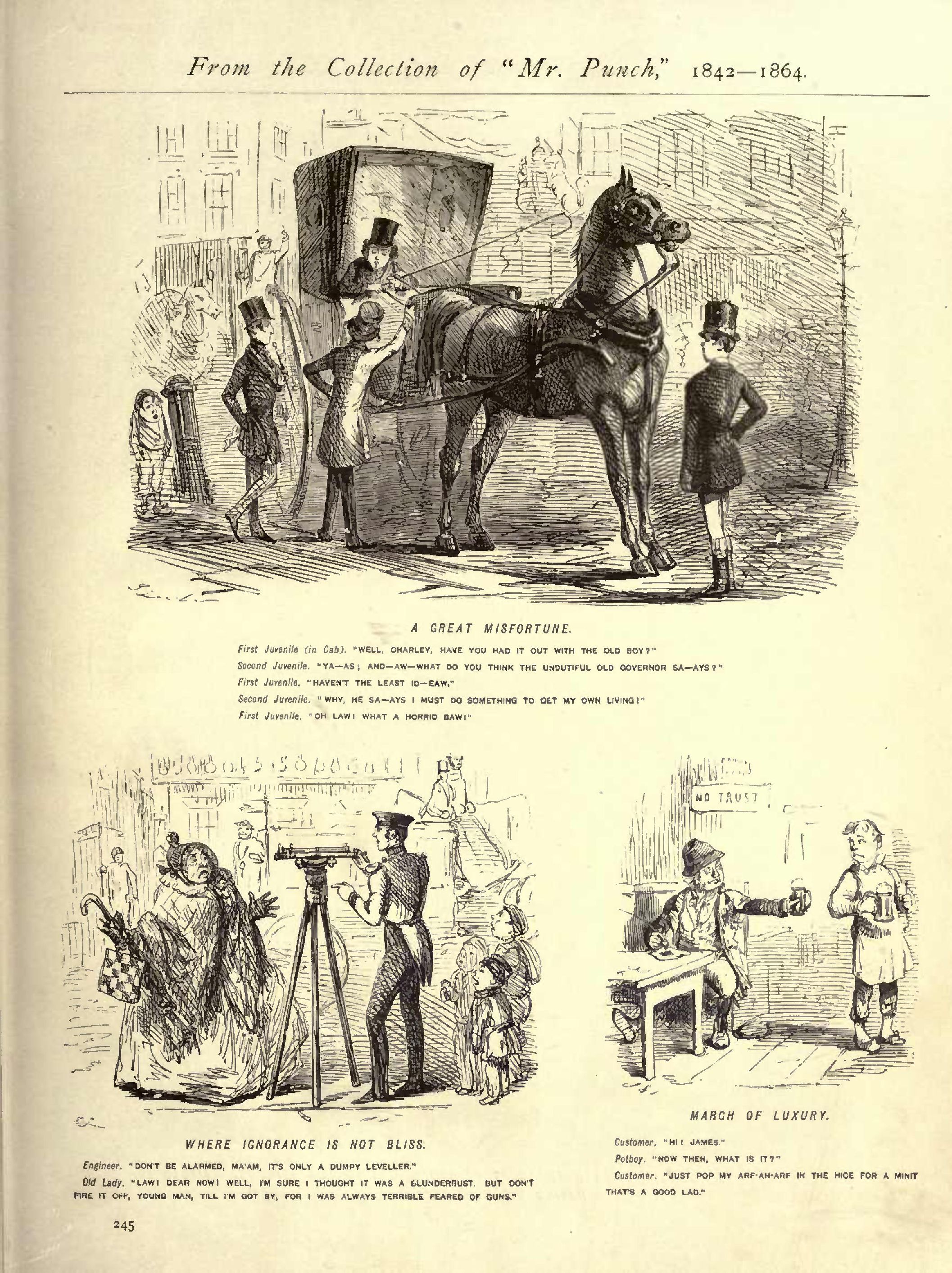 Advantages of the new Postal arrangements .............1845...272 Advice Gratis .........................................1852...062 Affair of Importance, An ..............................1852...012 After the Pantomime ...................................1853...070 Aged Juvenile, An .....................................1846...223 Aggravating—Rather ...................................1850...151 Agony Column ..........................................1848...262 Agricultural Distress..................................1851...129 Agricultural Distress Dodge, The ......................1851...195 Alarming...............................................1850...050 Alarming ..............................................1858...078 Alarming Effect of the Hat and Table-moving Experiment.1853...184 Alarming Intelligence .................................1852...030 Alarming Message, An...................................1842...222 Alarming Occurrence ...................................1850...011 Alarming Symptoms......................................1846...010 Alderman's Advice to his Son, The .....................1851...037 All is fair in Love, &c................................1855...255 All is Vanity .........................................1852...176 Ambitious Youth, An ...................................1848...273 Amusement for a Rainy Day .............................1863...280 An Exclusive...........................................1852...112 An Impossibility ......................................1846...263 Analogy................................................1850...113 Aucicnt Impostor, An...................................1852...170 Ancient Mariner, An ...................................1852...277 And here are the Girls in the Round Flats..............1855...169 Anglers hear Strange Things ...........................1845...036 Angling in the Serpentine .............................1851...102 Another Bit from the Mining Districts .................1854...121 Another Bit of Serious Pantomime.......................1852...163 Another Innocent and Amusing, &c.......................1848...048 Anxious Moment, An ....................................1853...204 Appearances are Deceptive..............................1850...274 Appropriate ...........................................1855...251 Aquatics...............................................1855...169 ...216 ...226 Arithmetic at the University ..........................1851...134 Artful Excuse, An......................................1847...094 Ascot, At .............................................1852...218 Association for the Advancement of Science , An .......1846...279 Awful Appearance of a "Wopps" .........................1849...213 Awful Instance of Perception, &c.......................1849...055 Awful Occurrence at an Evening Party...................1851...038 Awful Position during a Storm .........................1846...077 Awful Scene on the Chain Pier, Brighton................1846...050 Awkward ...............................................1855...049 Awkward Consequence of removing the Soldiers ..........1851...257