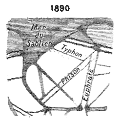 Cette question est beaucoup plus simple. On vous vend pour deux sous un bout de carton--en forme de parallélogramme, pour parler comme M. de Freycinet (de l'Académie française)--et ce parallélogramme est découpé de telle sorte qu'en le présentant à la lumière l'ombre des découpures projette sur une surface plane, feuille de papier ou paroi de muraille, l'image de M. Carnot, du Carnot sommaire et géométrique inventé, je crois, par Gyp, ce ou cette Gyp qui a un si joli brin de crayon au bout de sa plume. L'Illustration a publié, dans ses amusements scientifiques, plus d'une question pareille à la question Carnot qui divertit les badauds sur le boulevard. Le président de la République, en se promenant comme un bon bourgeois parmi la foule--comme un Aroun-al-Raschild dont l'aimable général Brugère serait le Giaffar--le président a pu en regardant les boutiques (tel le roi Louis-Philippe allait par les rues, avec son parapluie sous le bras) entendre le cri, l'appel des camelots: