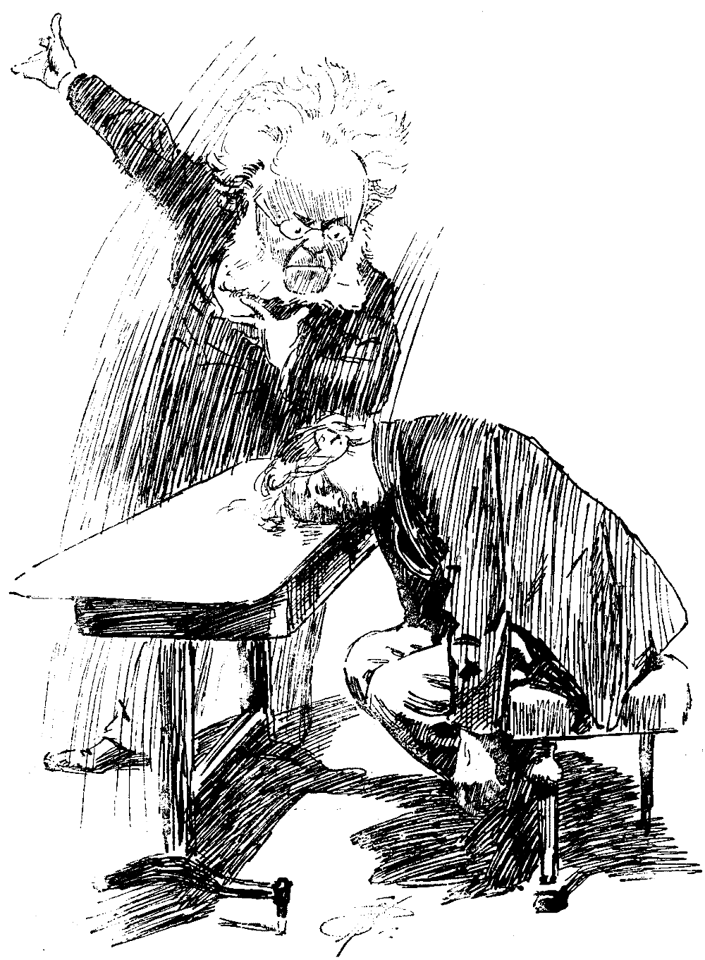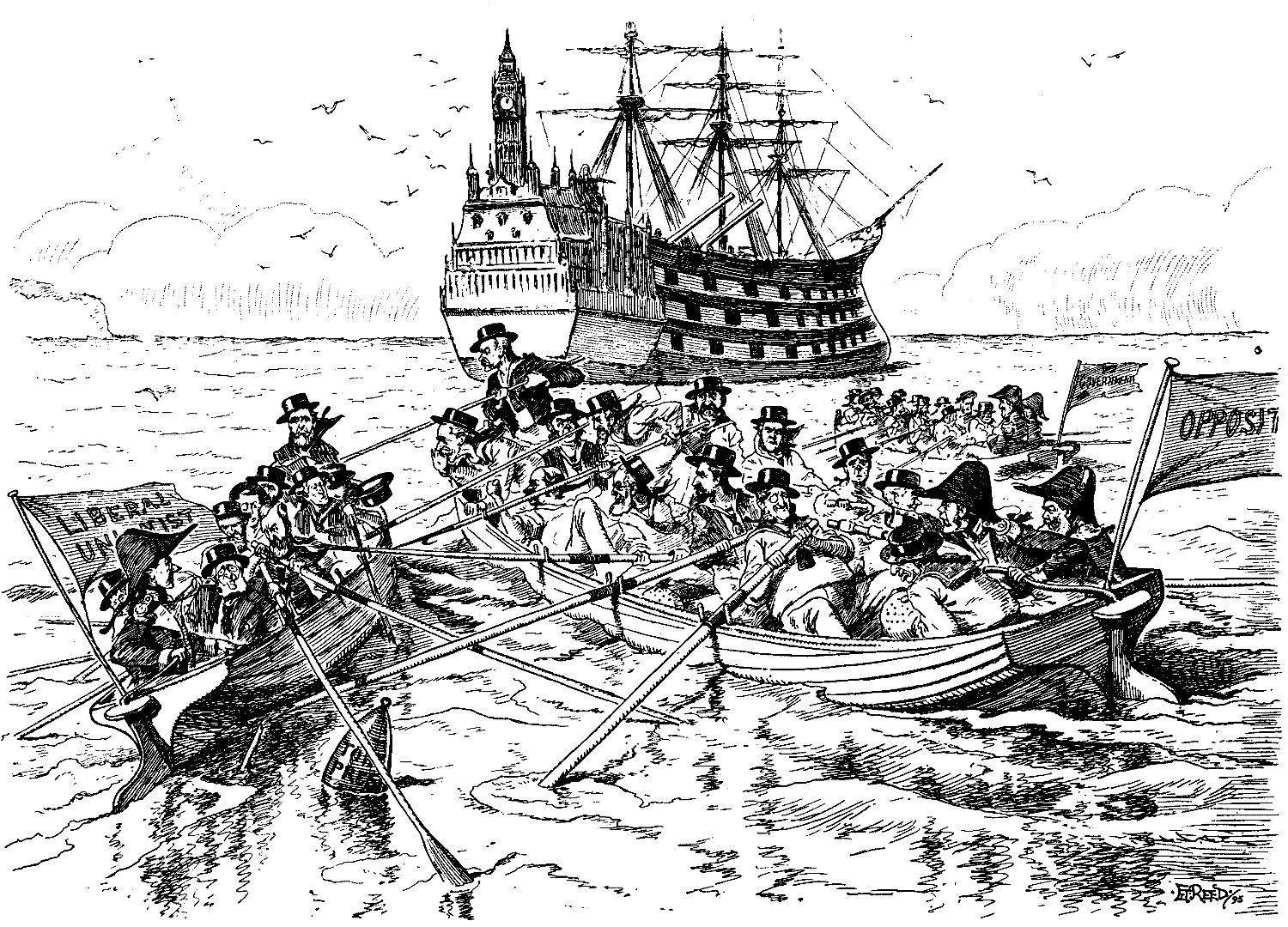 Wednesday.—Letter in Times from Byron Reed. Says I'm not so bad as they want to make me out. Nice sensible fellow Byron. Shall make him Minister of Agriculture. Have sent ultimatums to Salisbury, Balfour, Akers-Douglas, Michael Hicks-Beach, and Chaplin, ordering them to retire from public life. Shall run the show on entirely different lines with Austen and Jesse to help me. Have heard from editor of New Review, who refuses to disclose name of author, of an attack on me. Have sent Henry James to editor with new patent rack and thumbscrews. But there, my name's easy. Never could bear malice. Always forgive everybody.... Notes from Salisbury, Balfour & Co. They refuse to retire. Henry James returns. Editor broke rack and threw thumbscrews out of window. A very rude man, Henry James says. Gully elected Speaker. I'm off to Birmingham.