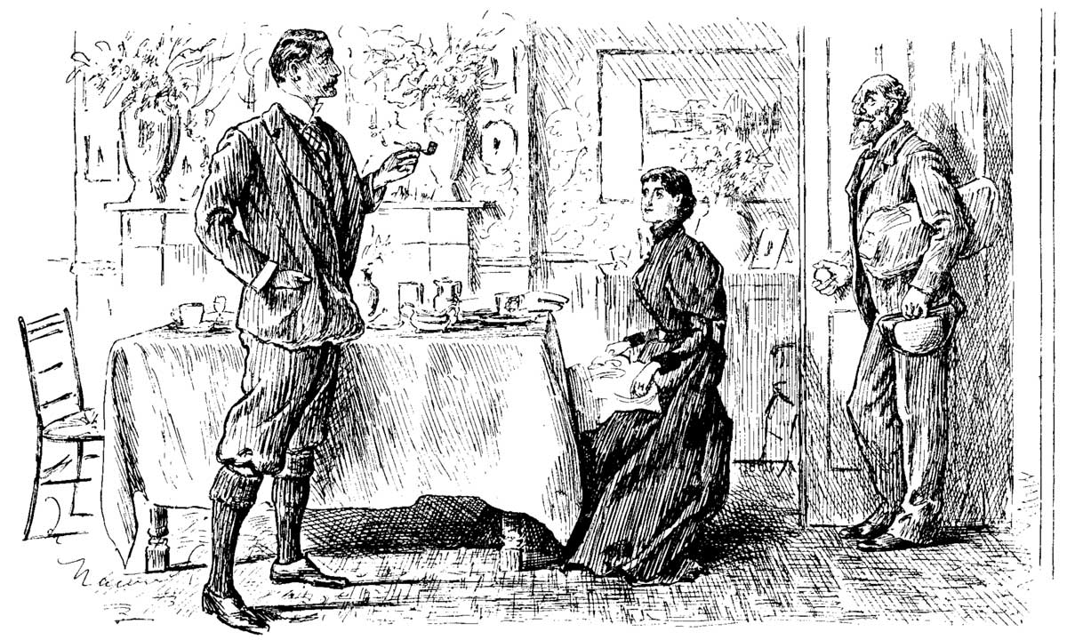 Tuesday.—That theory of re-incarnation impresses me wonderfully. Think about it all night. In the silent darkness remember that I once stamped on a black beetle. My nurse called it "a black beadle." Think of this with horror. Will it come back to murder me? Terrible! Get up still nervous. Must go out into the air and sunlight, to dispel my gloomy thoughts. Stroll along Piccadilly. To avoid a shower step into the Burlington Arcade. Heavens, what is that by the entrance? It is a man in black—a black beadle! Gaze at him aghast. It has come back, the soul of that harmless crawling thing which I crushed in my boyhood, and now——Fly while there is yet time! Ha! I am safe at home at last.