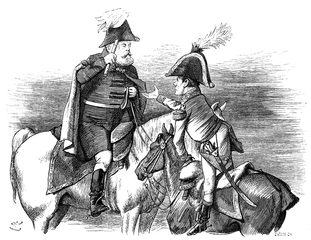 F. explains:—It arose in this way. Had arranged beforehand that pole of carriage should snap in two during ascent of heavy incline in very heart of borough, idea being that partisans would be compelled to un-horse vehicle and personally propel it along in semi-triumphal progress. All went well till it came to pushing. Then was seen that weight of fellow-passengers (three obese stump-orators sent down by Caucus) overtaxed strength of small body of supporters, men remarkable for intellectual perspicuity rather than brute force. Notwithstanding laudable efforts, carriage receded, slowly at first, then, gaining impetus, rushed with incredible speed full into plate-glass window of Mayor's grocery-store. Self and all three orators bled profusely. Should add that Mayor was exceedingly popular politician of heterodox views. Cause of my Party completely ruined by shocking fiasco.