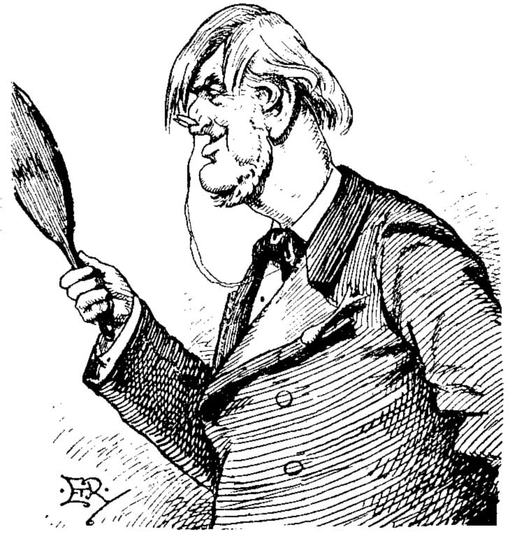 Wednesday.—Have now no doubt of this marvellous theory. It is probable that re-incarnation may sometimes go the other way. Will investigate at the Zoological Gardens. Directly I see the largest elephant I recognise my late mother-in-law. The large, heavy form, the habit of trampling obstacles under foot—obstacles such as myself—the very cap-strings, now become ears flapping in the wind, all are there. She always poked her nose into everything, and she does it now. What a proboscis she has! Must tell the keeper the real truth to prevent mishaps. Tell him confidentially. He grins. Assure him that I am quite serious. He leads me gently by the arm to the exit, where the turnstile only turns one way, and advises me to go home at once.