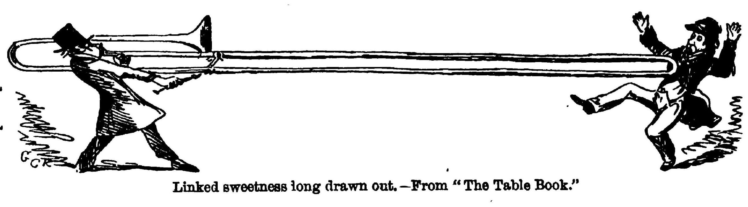 It was after another and a final parting from Mr. Ainsworth, on the sale of his magazine, that Cruikshank, “left in the lurch,” to use his own phrase, started his “Table-Book,” with Gilbert à Beckett as editor, and Bradbury and Evans as printers and publishers. The artist has put on record the manner in which he and the eminent Whitefriars firm came together:—
