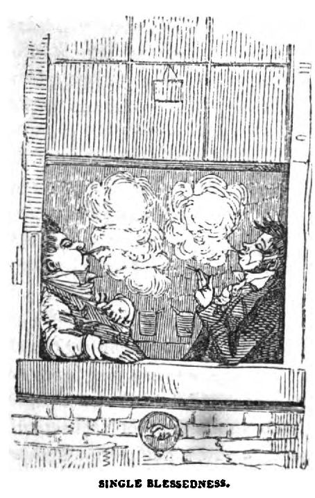 Having attentively perused the foregoing pages, you will be desirous, it is to be presumed, of carrying still farther those comical pursuits in which, with both pleasure and profit to yourselves, you have been lately engaged. Should such be your laudable intention, you will learn, with feelings of lively satisfaction, that it is one, in the accomplishment of which, thanks to Modern Taste, you will find encouragement at every step. The literature of the day is professedly comic, and of the few works which are not made ludicrous by the design of their authors, the majority are rendered so in spite 140of it. In the course of your reading, however, you will be frequently brought into contact with hack-ney-coachmen, cabmen, lackeys, turnkeys, thieves, lawyers' clerks, medical students, and other people of that description, who are all very amusing when properly viewed, as the monkeys and such like animals at the Zoological Gardens are, when you look at them through the bars of their cage. But too great familiarity with persons of this class is sure to breed contempt, not for them and their manners, but for the usages and modes of expression adopted in parlors and drawingrooms, that is to say, in good society. Nay, it is very likely to cause those who indulge in it to learn various tricks and eccentricities, both of behavior and speech, for "It is certain, that either wise bearing or ignorant carriage is caught, as men take diseases, one of another." Shakspere.