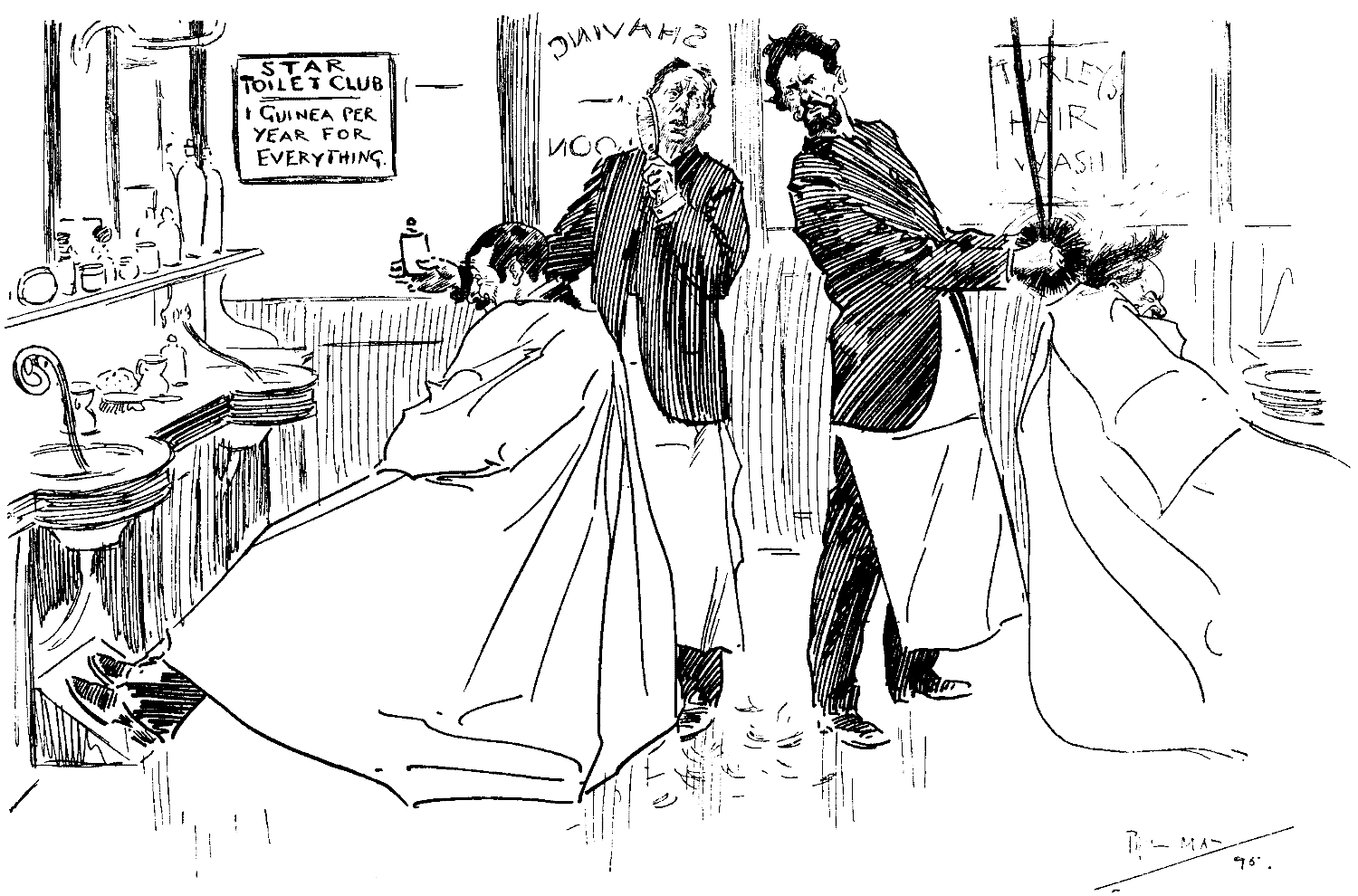 New Assistant (after hair-cutting, to Jones, who has been away for a couple of weeks). "Your 'Air is very thin be'ind, Sir. Try Singeing!"