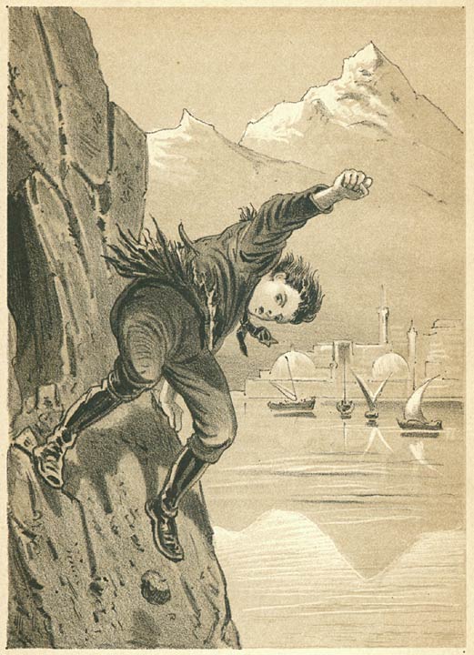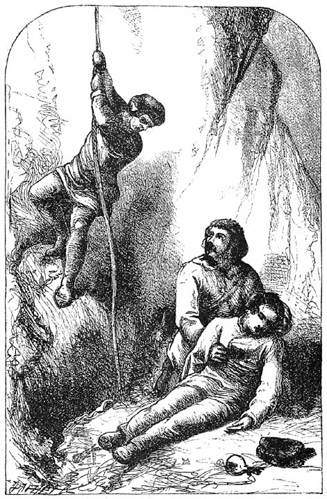 Een goedkeurend gemompel volgde op deze woorden en toen wijdden allen hun aandacht aan de boot, daar de talrijke blokken lava, door de bergstroomen meegesleept en door gevallen boomstammen in hun vaart gestuit, den tocht zeer gevaarlijk maakten.
