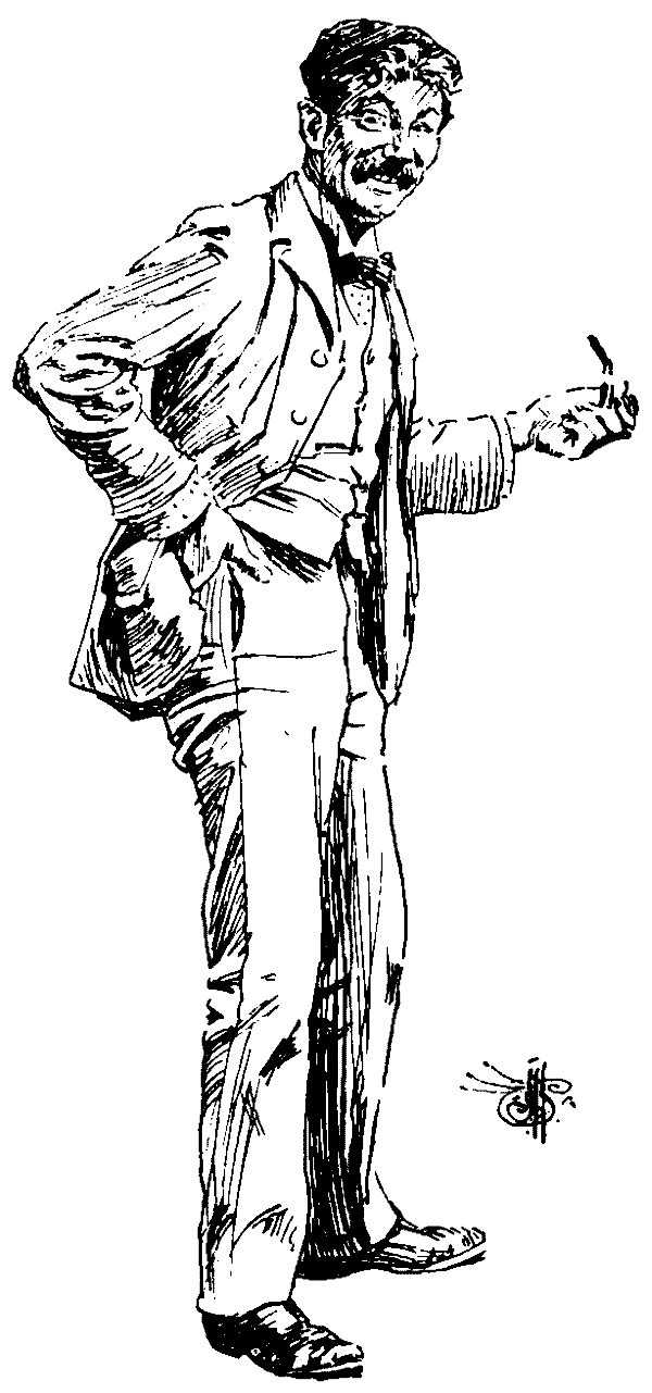 As soon as Vote of Censure passed on Cawmell-Bannerman, Markiss became possessed of uncontrollable passion for instant possession of his seals of office. How was it to be done? Cawmell a Scotchman; not easy to get loose property out of his grip. Markiss, instinct with influences of spacious times of Queen Elizabeth, not to be trifled with. Clapped his hands. Enter faithful henchman, one Schomberg. A stoutly-built man of herculean strength, bowed legs, grizzled beard, short thick hair like hand-spikes standing up above pair of ears resembling nothing so much as Tower Bridge when, in opening, either flap stands out at angle of forty-five degrees. A certain piquancy given to his features by front tooth protruding like tusk of wild boar.