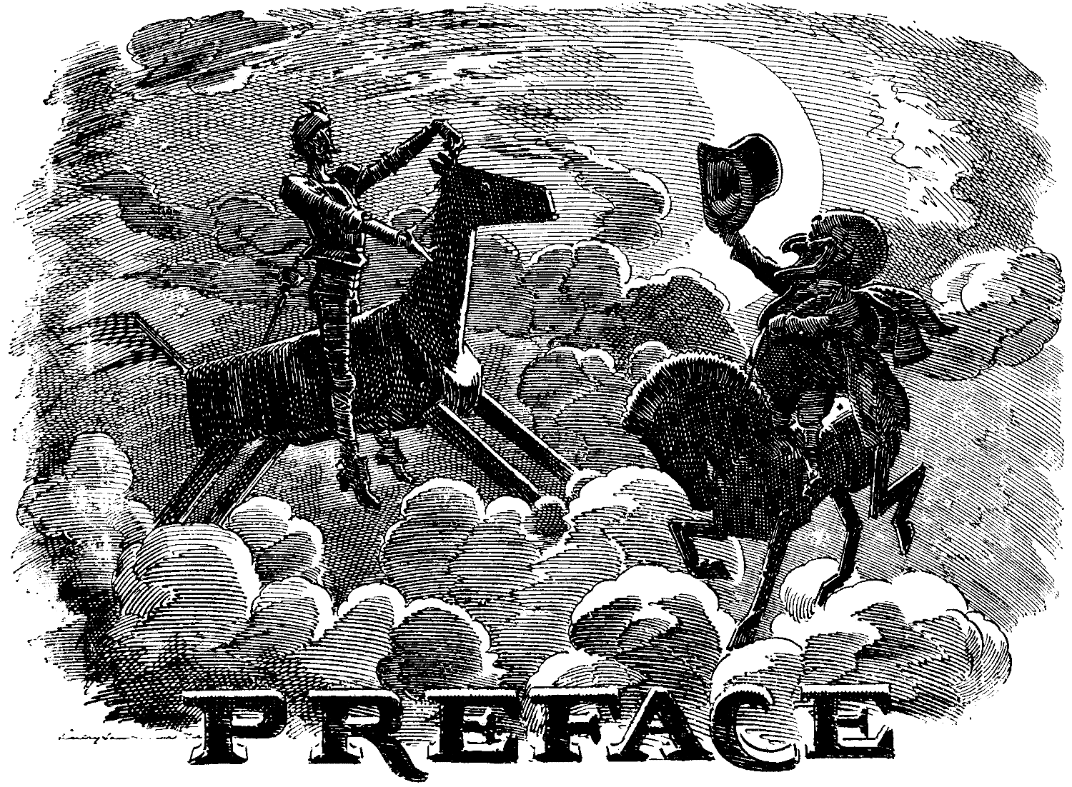 SCENE—Cloudland, nigh to midnight of the last day of the Old Year. The Incomparable Sage of Fleet Street and "La Mancha's Matchless Knight" mounted on their respective wooden horses.