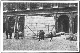 At the right, the painting covered with timber and sand-bags