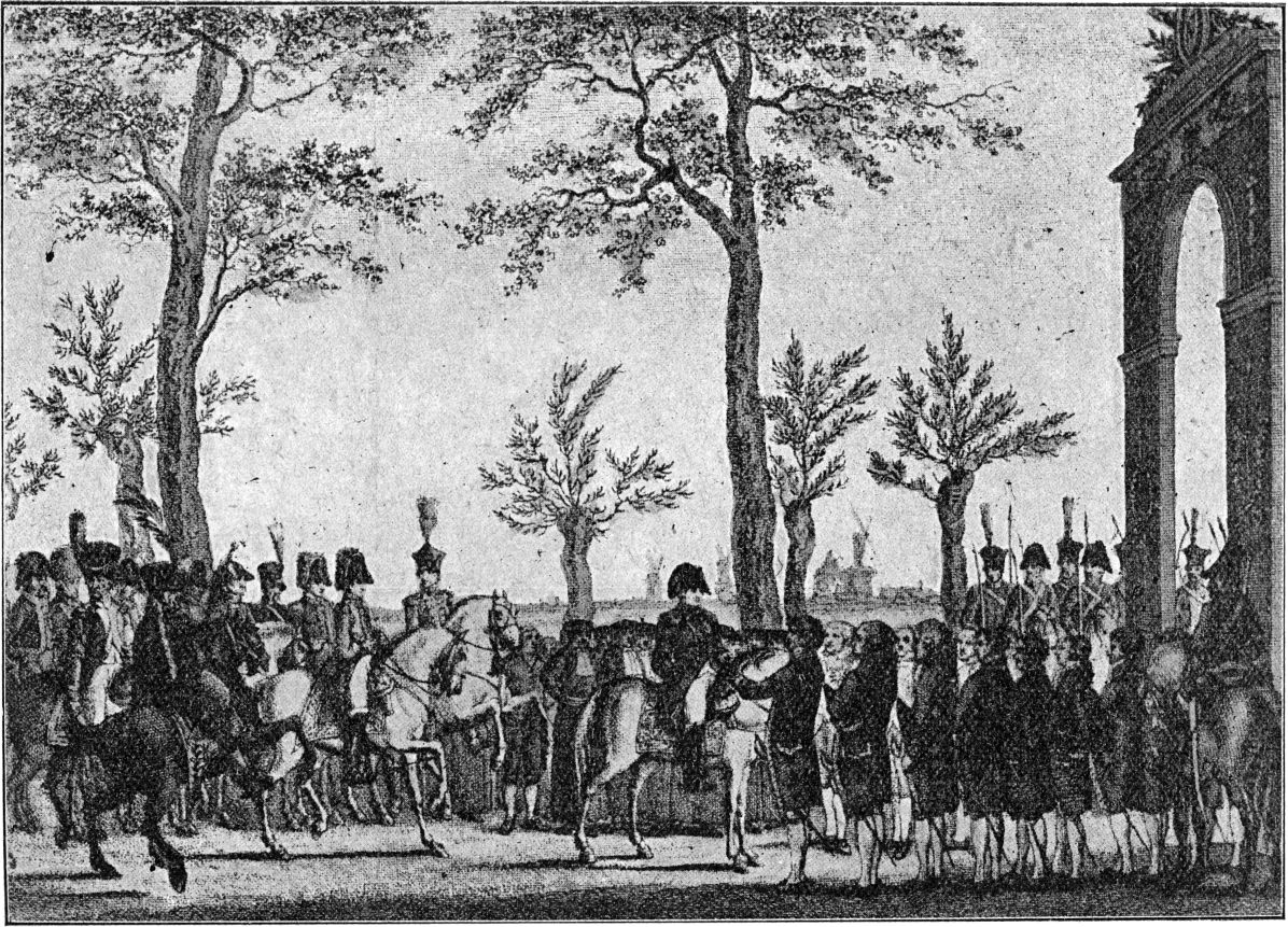 HOOFDSTUK VI. Napoleon's bezoek aan Amsterdam.—Hij moet wachten op een vuilnisman.—Generaal Krayenhoff bij hem op audiëntie.—Hoe Napoleon reisde.
