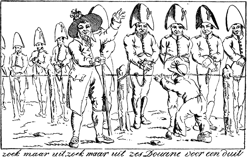 Bij Keizerlijk Besluit van 18 Oct. 1810 werd hier de Conscriptie, of gedwongen opschrijving voor den krijgsdienst (zoowel voor de zee- als voor de landmacht), ingevoerd. Dit Decreet was vooral zoo hatelijk in het oog van òns volk, dat steeds met minachting op den krijgsdienst had ter neder gezien en het krijgvoeren gaarne aan huurlegers overliet. En nu werden onze jongelingen verplicht, om de wapenen te hanteeren, niet in dienst van eigen land en volk, maar in dienst van een uitheemschen dwingeland, wiens heerschzucht jaarlijks duizenden slachtoffers vorderde.