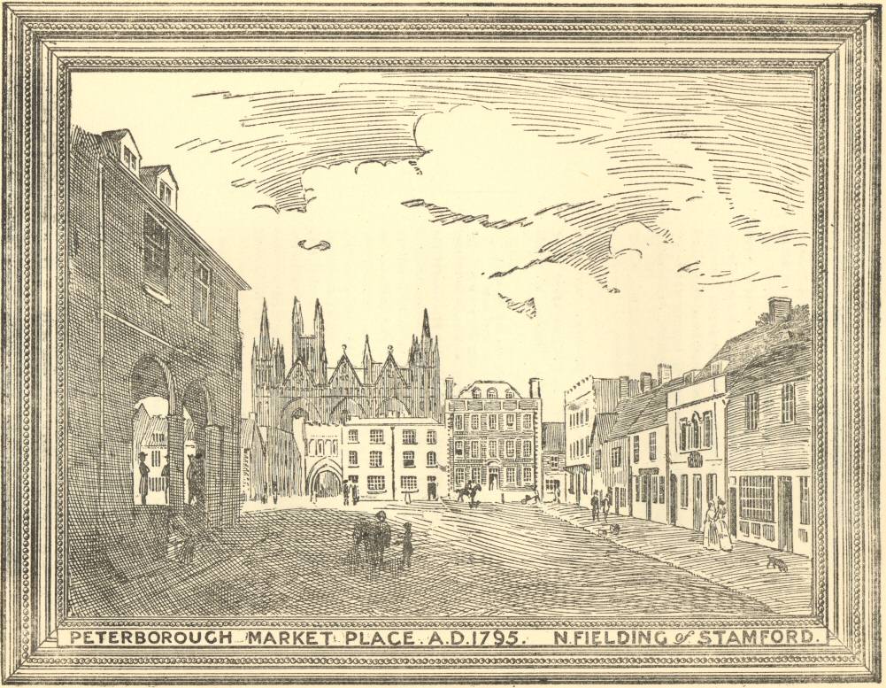 There were two considerable features of Peterborough which have entirely disappeared. Where Queen Street and North Street now stand were two large breweries, known as Buckle’s Brewery and Squires’s Brewery. They were quite institutions of the place, and it always strikes me as a very strange thing that they should have entirely disappeared, as one of them would have been larger than all the breweries now in Peterborough. Buckles’ Brewery was certainly a very remarkable one, and carried on with great energy and spirit. There was one peculiarity they had—that some friends of the partners could assemble on Easter Monday and spend the afternoon in playing at marbles. I have spent pleasant afternoons there on Easter Mondays. There were two large tuns or barrels in which the beer was kept, one of which was called Mrs. Clarke, and the other the Duke of York, to perpetuate a scandal at the time when they were constructed. A very hospitable time always followed the game at marbles.