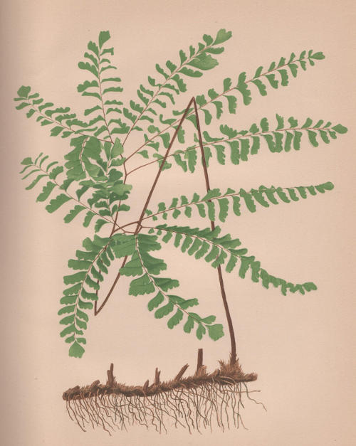 The American Maiden-hair is easily cultivated, and will grow very freely either in a shaded corner of a garden or in the house, and is perhaps more elegant and graceful than any other of our ferns, the climbing-fern scarcely excepted. Josselyn evidently mistook it for the Venus-hair, one of the chief ingredients in a syrup which was formerly a famous remedy for nearly all ailments, and said, “The Apothecaries for shame now will substitute Wall-Rue no more for Maiden Hair, since it grows in abundance in New-England, from whence they may have good store.”