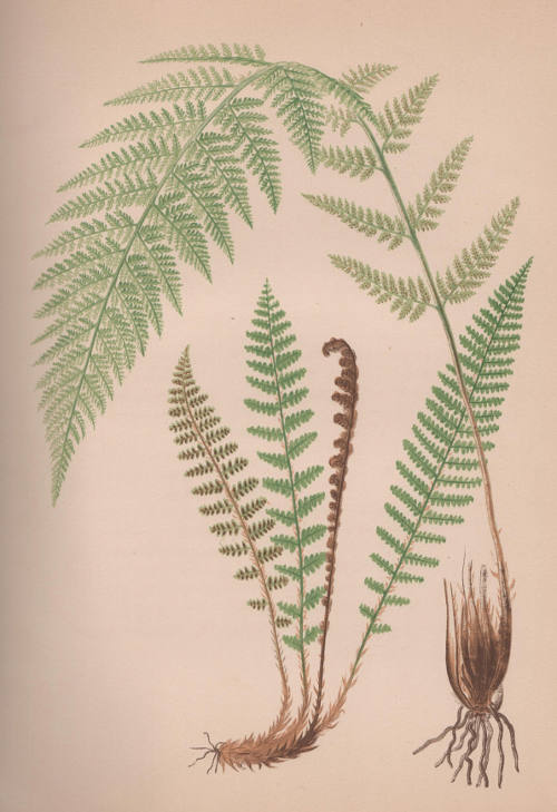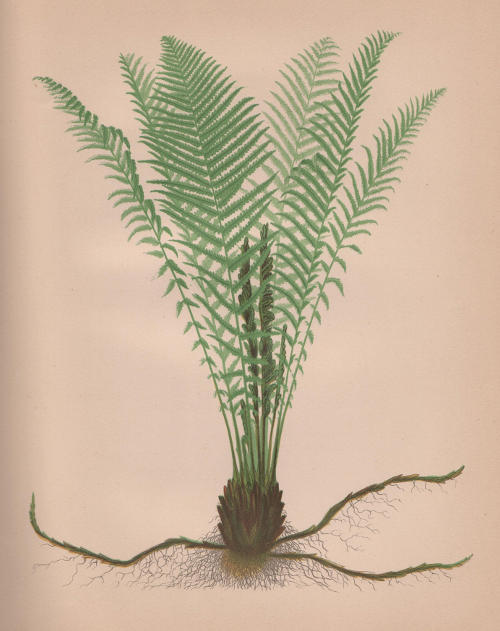 Description:—This fern has a stout, usually ascending, but sometimes erect, very chaffy root-stock, very much like [066] that of the species last described. It sometimes rises a little above the surface of the ground, forming a short trunk.