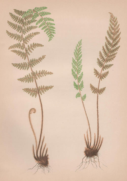 Description:—The root-stock of this fern is rather short, usually somewhat nodose, and densely chaffy with very [077] narrow long-pointed soft bright-brown scales, which in the specimens examined are destitute of midnerve.