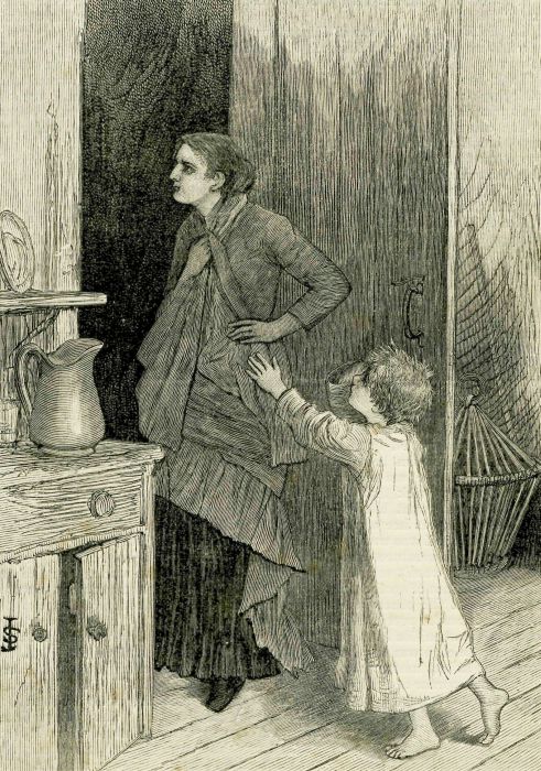 "Scarcely knowing I had dreamed, I told him all about taking the nest, and disobeying him, and about the woods being silent, and how I came home and found our home ruined, and father and mother gone, and the birds dead; and when he looked kindly at me, I fell down on my knees and begged him to forgive me, and not take our home away from mother, but to send only me away, because I'd taken the nest, and to let father and mother and the children stay. Then he questioned me till I'd repeated all that Tom Harris had told me when I went to ask for father; and I said how father had never been to the public before that night, and how mother had been to fetch him, though she was ill. Then he put out his kind hand, and lifted me up.