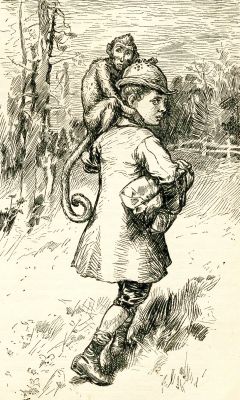 Again Mrs. Treat took the boy in her arms, as if it were one of her own children who was leaving her, and as she stroked his hair back from his forehead, she said: "Don't forget us, Toby, even if you never do see us again; try an' remember how much we cared for you, an' how much comfort you're taking away from us when you go; for it was a comfort to see you around, even if you wasn't with us very much. Don't forget us, Toby, an' if you ever get the chance, come an' see us. Good-by, Toby, good-by," and the kind-hearted woman kissed him again and again, and then turned her back resolutely upon him, lest it should be bad luck to him if she should see him after saying good-by.