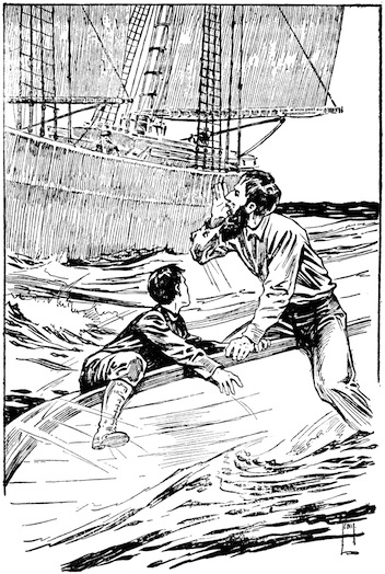 In the first place everybody talked at once, and Mrs. Chillingworth laughed and then cried, and then cried and laughed again. It was the most joyous reunion the high seas had ever witnessed. And through it all only one figure stood apart—that of Zeb Hunt. Presently he slipped away and made his way to the stern, where the boat with her provisions and water on board was towing along.