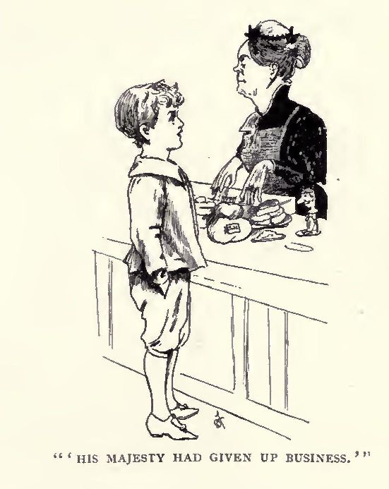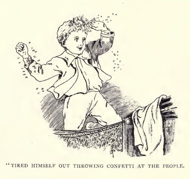 Quite early on the morning after the Crown Prince’s return Cæsar Augustus Maximilian Claudius Smith (once more called Thomas for short) was sent to Drinkon College to bring the Royal Nurse and the little King home again, and while he was gone the Prince and Princess drove out in a beautiful carriage and pair and were received with most enthusiastic cheers and applause by the populace; and in the afternoon the little King returned accompanied by Mrs. Martha Matilda Nimpky.