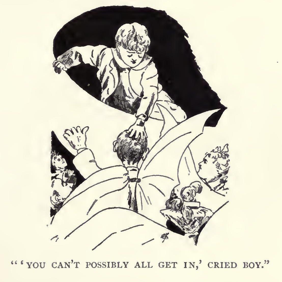 “Good gracious!” cried Boy, “they can never all get in here; we shall be upset. Go back!” he shouted, leaning over the Moon, “go back!”