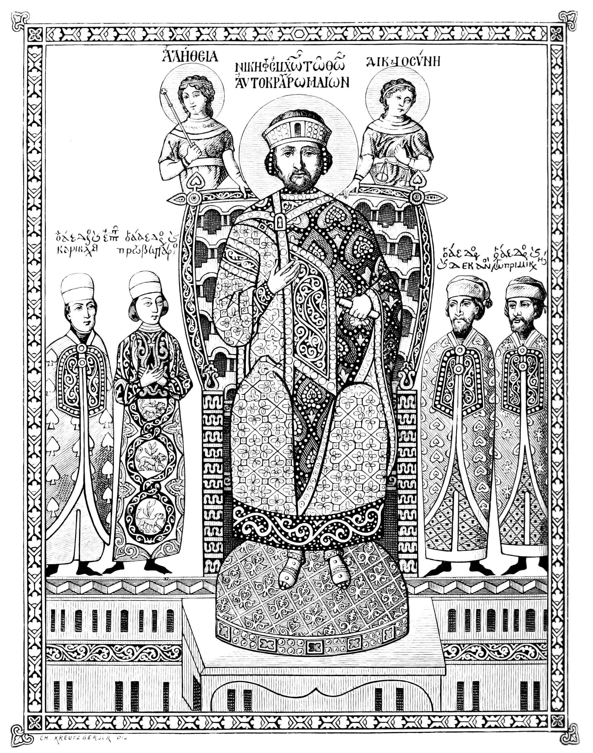 The very compound character of Byzantine art; love of splendour; Gospels in purple and gold; monotony of the Byzantine style; hieratic rules; fifth century manuscript of Genesis; the Dioscorides of the Princess Juliana; the style of its miniatures; imitations of enamel designs; early picture of the Crucifixion in the Gospels of Rabula; the splendour of Byzantine manuscripts of the Gospels; five chief pictures; illuminated "Canons"; Persian influence; the Altar-Textus used as a Pax; its magnificent gold covers; the Durham Textus; Byzantine figure drawing, unreal but decorative; Byzantine mosaics; the iconoclast schism, and the consequent decadence of Byzantine art.