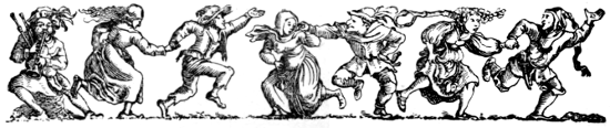 [445] Maid Marian was always a prominent figure in the morris-dance. Robin Hood, Friar Tuck, and other characters were also added according to the humour of the dancers.