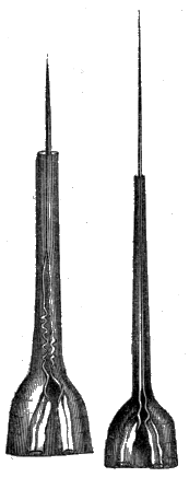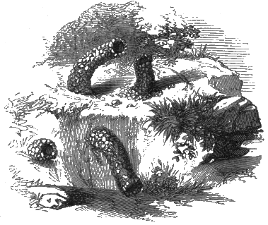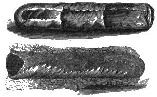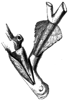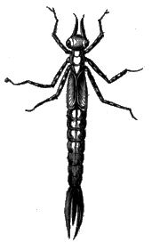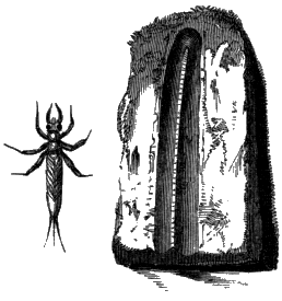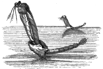 The Abdomen is, then, the only remaining portion of the insect which we have now to notice. It has no legs attached to it, and contains the intestines, and other portions of the insect's internal anatomy. It is formed of a varying number of rings, which are easily distinguishable in the wasp and many other insects, and these rings are connected together by delicate folds of membrane, fitting sometimes into each other like the tubes of a telescope; in other instances fastened together, [394] like so many hoops, by their edges. In consequence of this mode of structure it is often very movable, and may even be bent into a half curve, in various directions, at the pleasure of the insect. The common earwig is particularly gifted with this movableness of its abdomen; and so are many insects which carry weapons of offence or defence in their tails. These organs, or appendages, are deserving of a brief notice, although it is probable that the structure of some of them is already familiar to most readers.