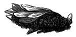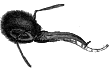 [V] The proboscis of the carpenter-bee differs from that of the honey-bee, possessing a curious notched sheath, as represented in the lower cut.