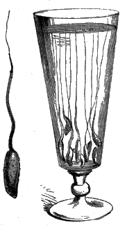 Perfect insects breathe. That this is so, the following experiments[Z] will satisfactorily prove. A spider and a fly were put into a glass jar, the mouth of which was closed all but a hole by which a tube was admitted. The tube was then connected with a pipe by which a supply of common coal-gas was poured into the jar, and when it was considered to be full of gas, and that all the air had been displaced, the tube was closed, and the insects were left shut up in an atmosphere of gas. In a few seconds both became very uneasy, the fly more particularly so; and in a few seconds more the fly began to agitate itself, to buzz against the sides of the glass, and to tumble over in the most extraordinary manner; the spider ran hurriedly about, as if astonished, and not knowing what to make of his new position; but presently he became very quiet, and, turning on his back, looked as if dead. For a [399] minute or two the fly, which was a large, active, flesh-fly, continued its noisy evolutions, dashing itself, as if intoxicated, on every side of its transparent prison. At length, as if exhausted, it lay on its back, its limbs paralyzed, but the wings still moving with extreme rapidity, and causing it to spin round in the most singular manner. Ultimately it, too, became perfectly without motion. After the lapse of about ten minutes, fresh air was gradually let into the jar, and it became most amusing to watch the return of both these insects, which had previously been as it were in the very jaws of death, back to life again; twitchings of their limbs, and slight convulsive movements, were the first indications of returning activity; and in a few minutes more both insects, now placed in a perfectly pure atmosphere, were as lively as before the experiment, and were allowed to make their escape into the open air. With other insects the same effects were produced by saturating a piece of blotting paper with ether, and dropping it into the jar, which was immediately covered over. In several other experiments the newly-discovered powerful fluid chloroform, by means of which the operations of surgery are [400] performed without pain, was employed; and it was remarkable to notice how quickly the insects were overpowered with the vapour of this potent liquid. In no instance was death produced by the gases or vapours employed. Wishing to destroy without pain a beautiful specimen of a goat-moth, it was first stupified with the gas, then transfixed with a pin, and again plunged in an atmosphere of gas all night long; but alas! for the unhappy insect, the morning dawned, and it was yet alive.