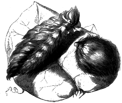 But, before this takes place, one last duty devolves [413] upon the insect, which, unfulfilled, would leave the world at its death with one link in the chain of creation broken off,—this is, to make provision for the continuance of its species. We have already said, that insects, as a general rule, have been, no doubt in wisdom, destined to deposit their eggs not knowing what is to come forth of them, and never enjoying that happiness which is granted to many other beings,—the happiness of parental love. Some most interesting exceptions to this rule will have also been mentioned, in which a mother's love for her young has been exemplified in a remarkable manner.