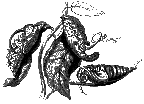 [J] M. Bonnet writes of the pupa of a moth, that it can climb up and down inside its cocoon like a chimney-sweep in a chimney! Some twirl about inside their cocoons; and it is said that a great entomologist was once so terrified by the curious noise thus made, that he nearly threw down the box in which it was, in his alarm.