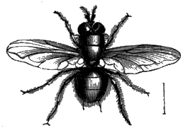 The House Fly. Natural size and magnified.