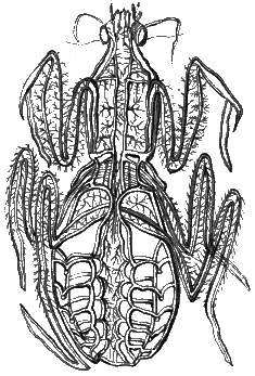 are in the larva state furious destroyers of other insects, and will gobble up aphides by the score in a very short time. The dragon-fly too stands conspicuous among the insect devourers, not only in its larva but in its perfect condition, and falls upon multitudes of insects, plucking off their wings, and with savage relish devouring their bodies. We are not, however, to suppose that the appetites of carnivorous insects are confined to insect-food. The blow fly lives upon and defiles by depositing its eggs in our butcher's meat. The cockroach will polish a bone as clean as, or cleaner than, any dog will, and, indeed, will consume almost anything that happens to come in its way. Lastly, we may not omit to mention, that some insects have to plunge their armed mouths into our flesh and that of other animals, and to slake their raging thirst in a draught of our life-blood: among which we will only enumerate the musquito, the gnat, and the flea. We need scarcely say, that insects are provided with proper organs of digestion.
