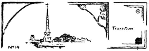 Instead of a drawn line of transition there may be only a suggestion of one, but the effect is the same; a softening of the corner angle, No. 14 and pp. 58,60. In pictorial art the vignette, in architecture the capital, are examples of the transition principle. In design an effect of Transition may be produced by radiation. (Illustrations below.) Accidental transitions occur in nature in the branching of old trees, where the rhythmic lines are thus unified.